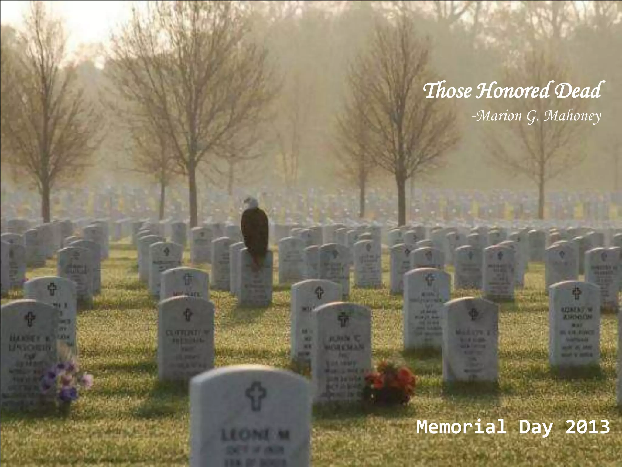 The poem explains why the speaker flies the American flag on Memorial Day - to honor the countless soldiers who sacrificed their lives in service of their country. The flag represents those who never returned home from war, as well as the families and communities impacted by their loss. It serves as a reminder of the high cost of defending liberty and protecting the nation.