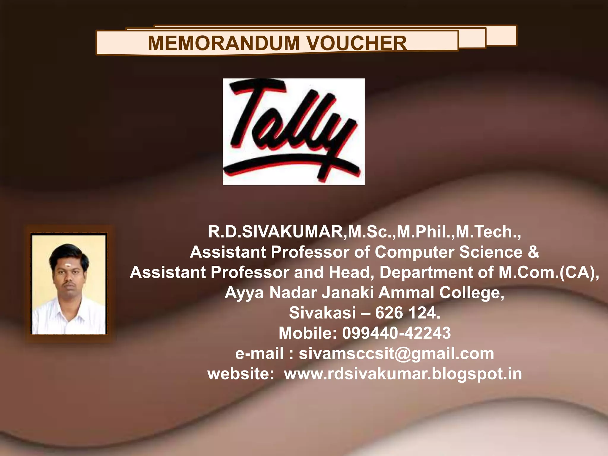 The document discusses memorandum vouchers in Tally, which are non-accounting vouchers that do not affect the books of accounts but are stored in a separate register called the Memorandum Register. Memorandum vouchers can be used for items like suspense payments, vouchers not yet verified, and items given on approval basis. The document provides instructions on how to create and view memorandum vouchers and the Memorandum Register in Tally.