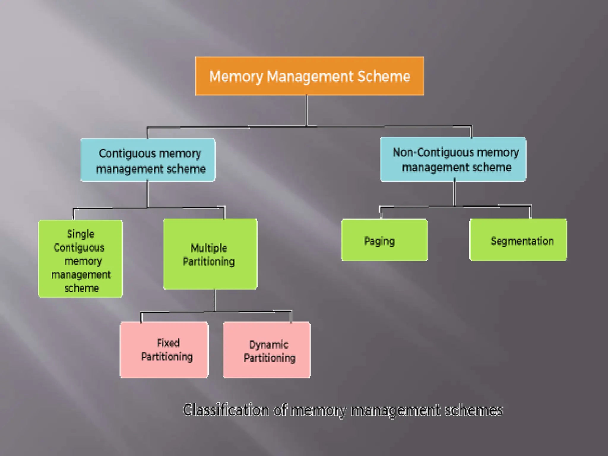 Introduces two main schemes: Contiguous and Non-Contiguous memory management.