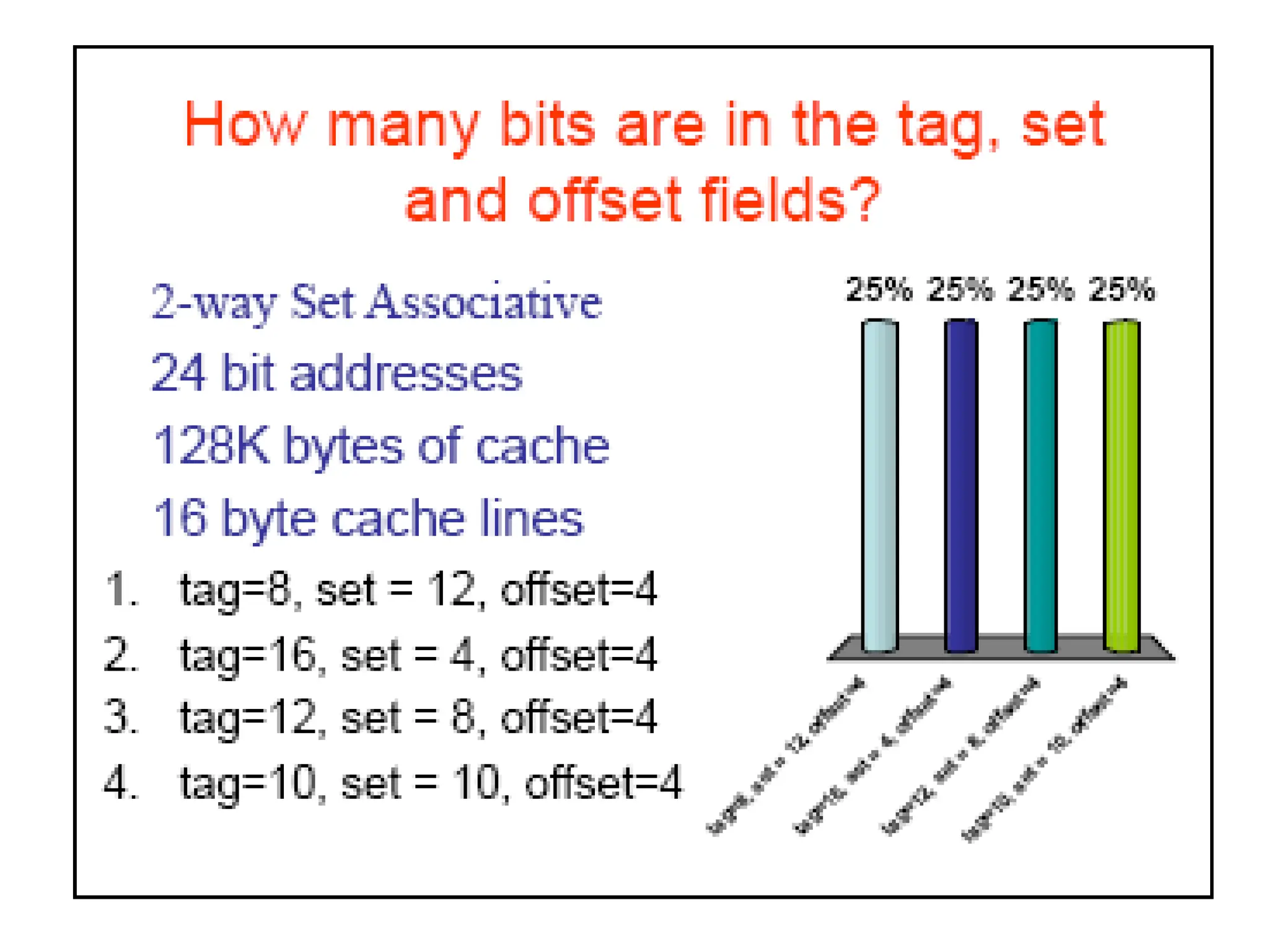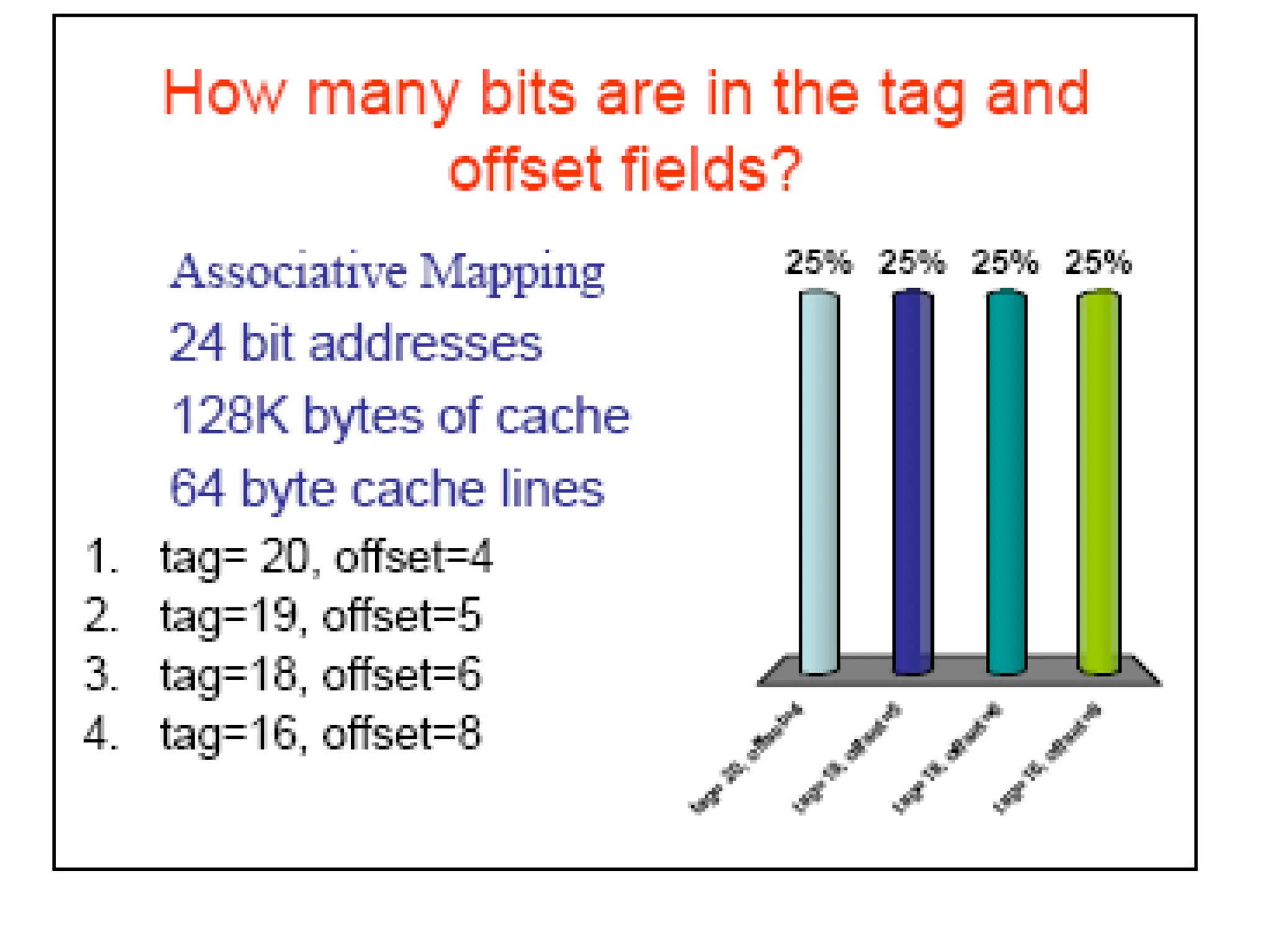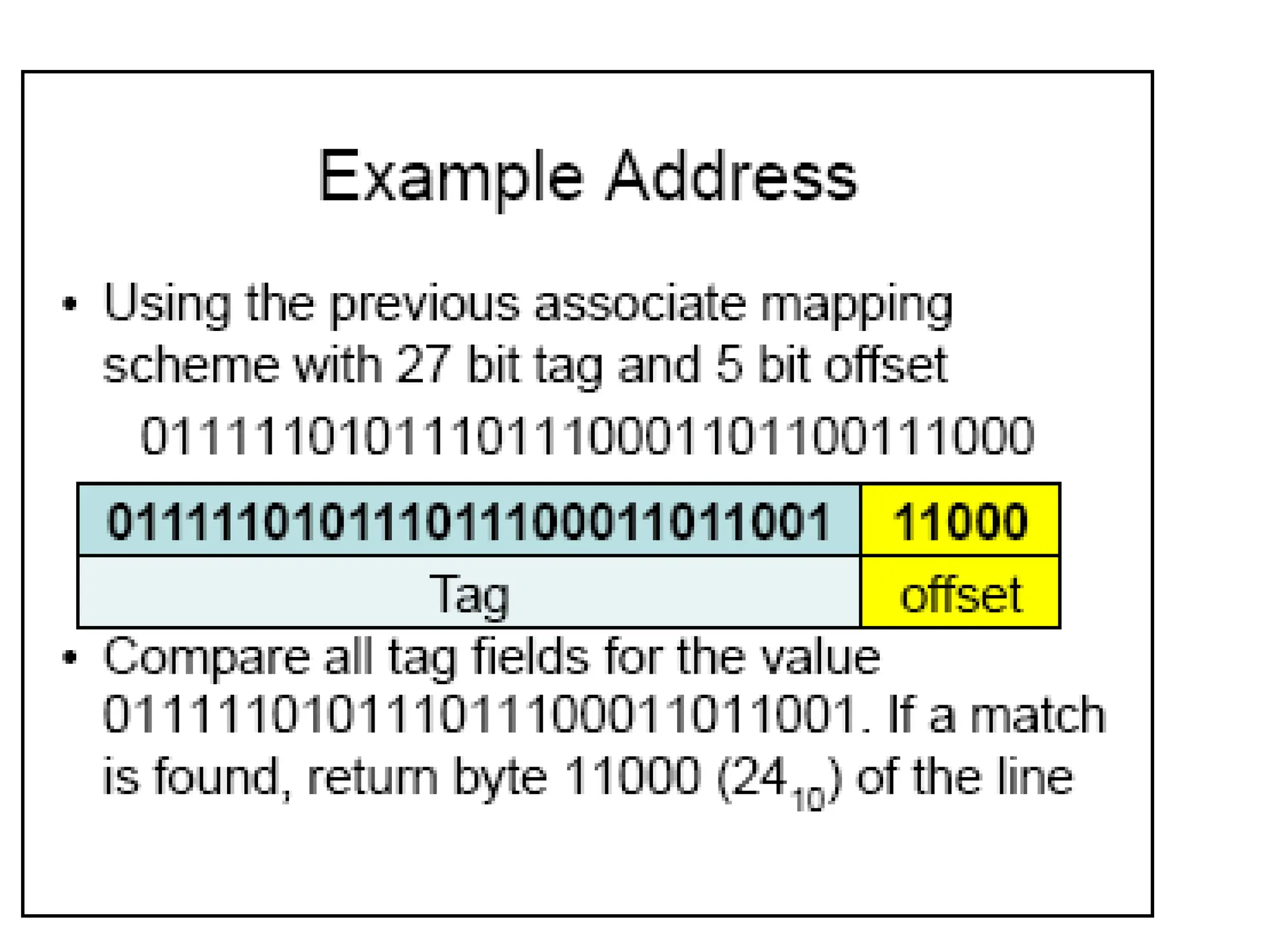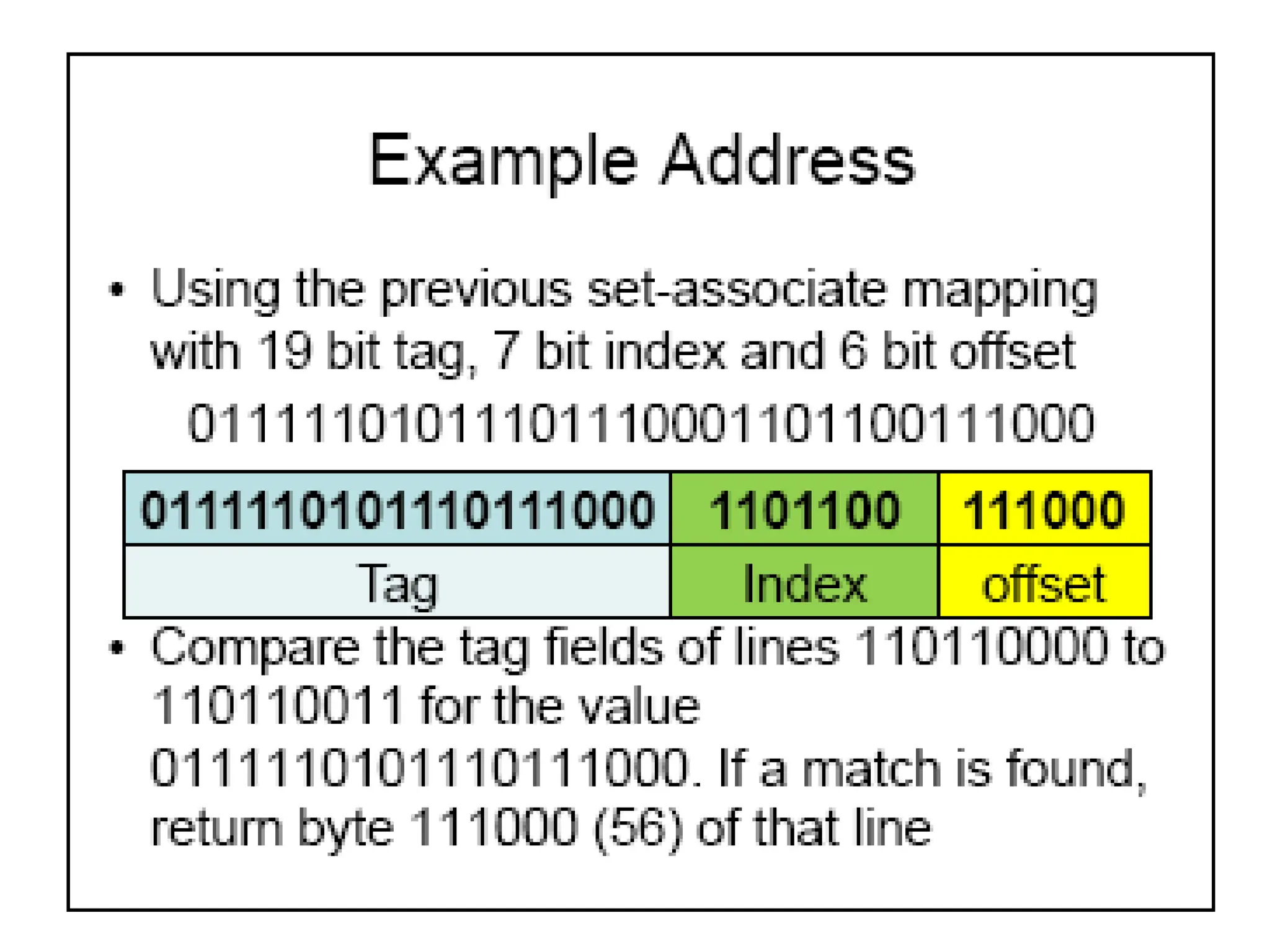 memory address will have three fields, one for the