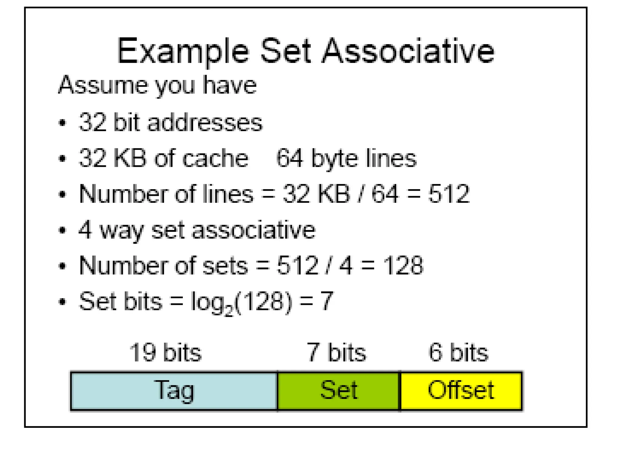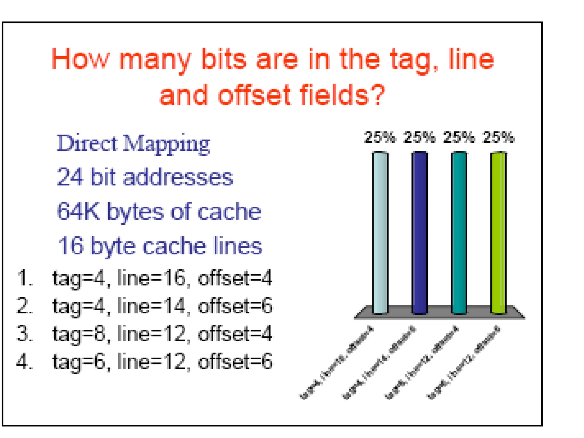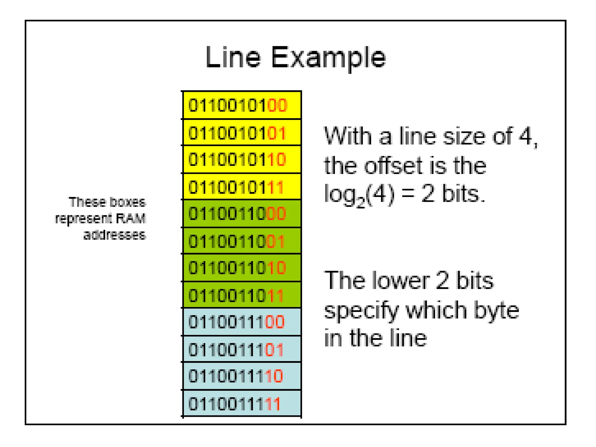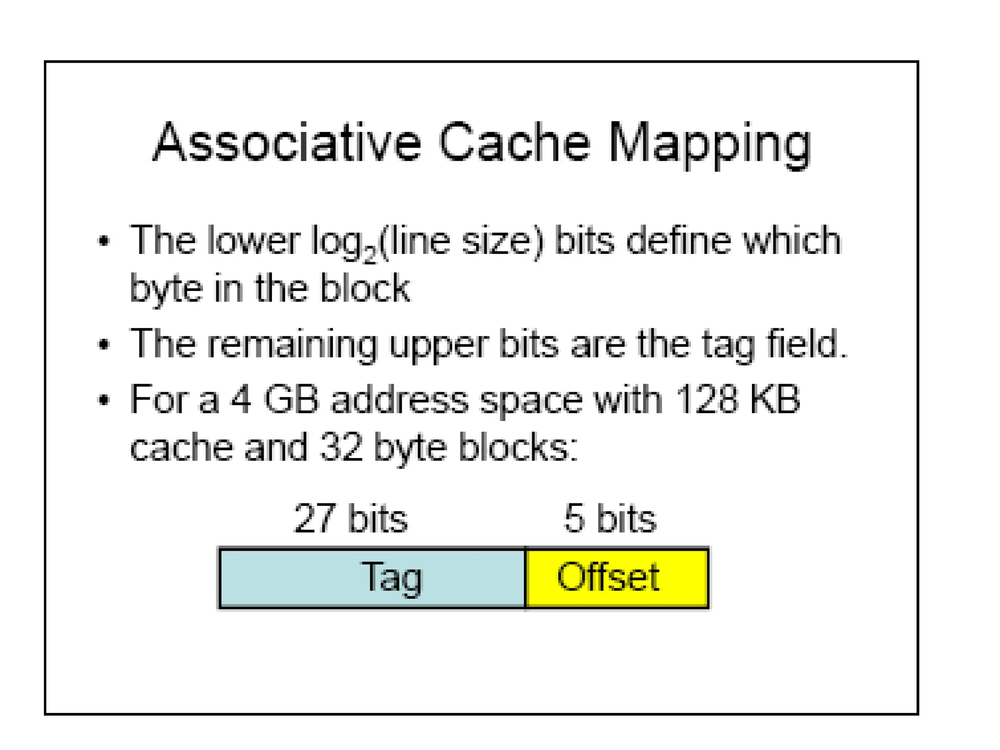 memory address will have three fields, one for the