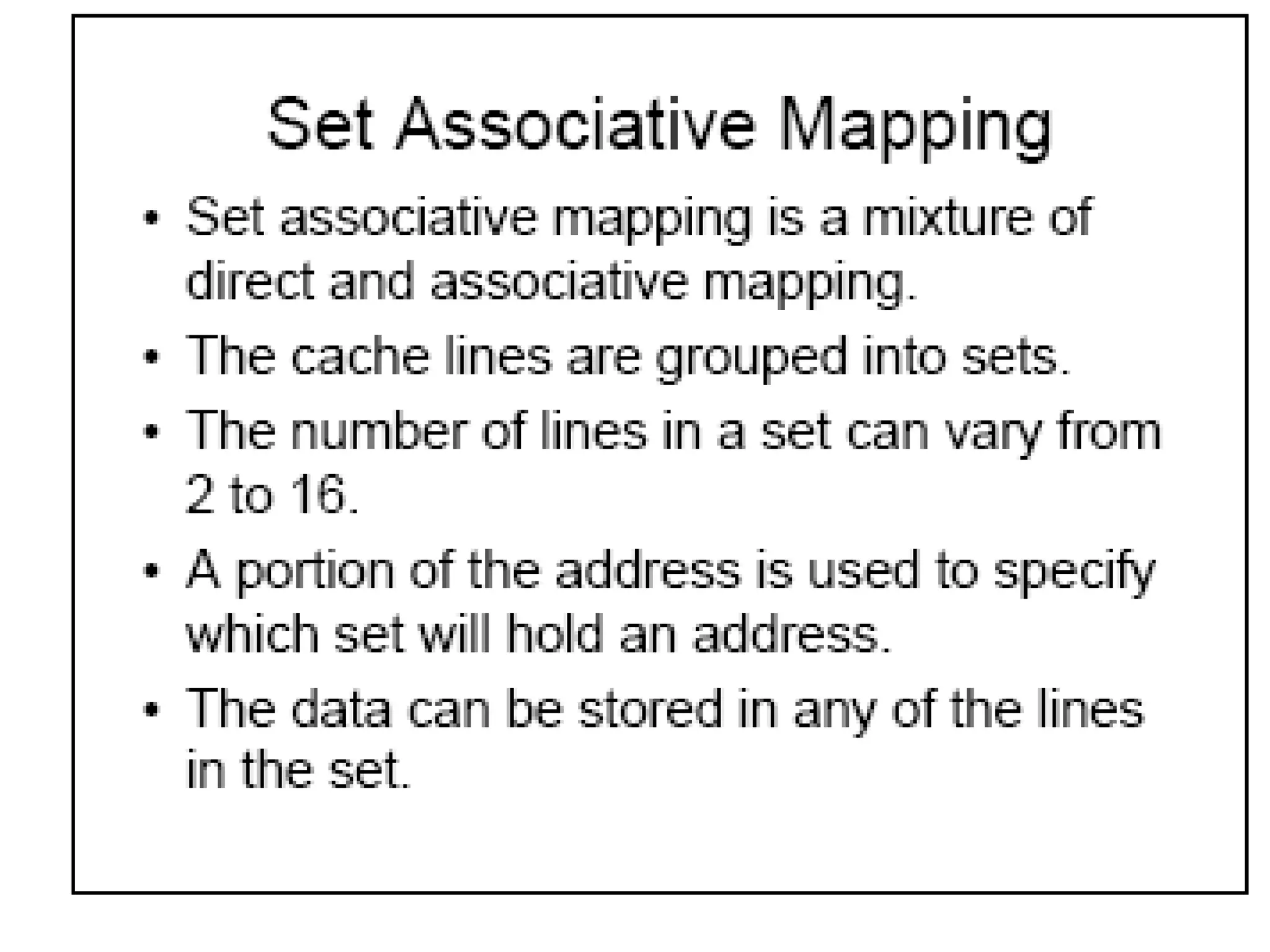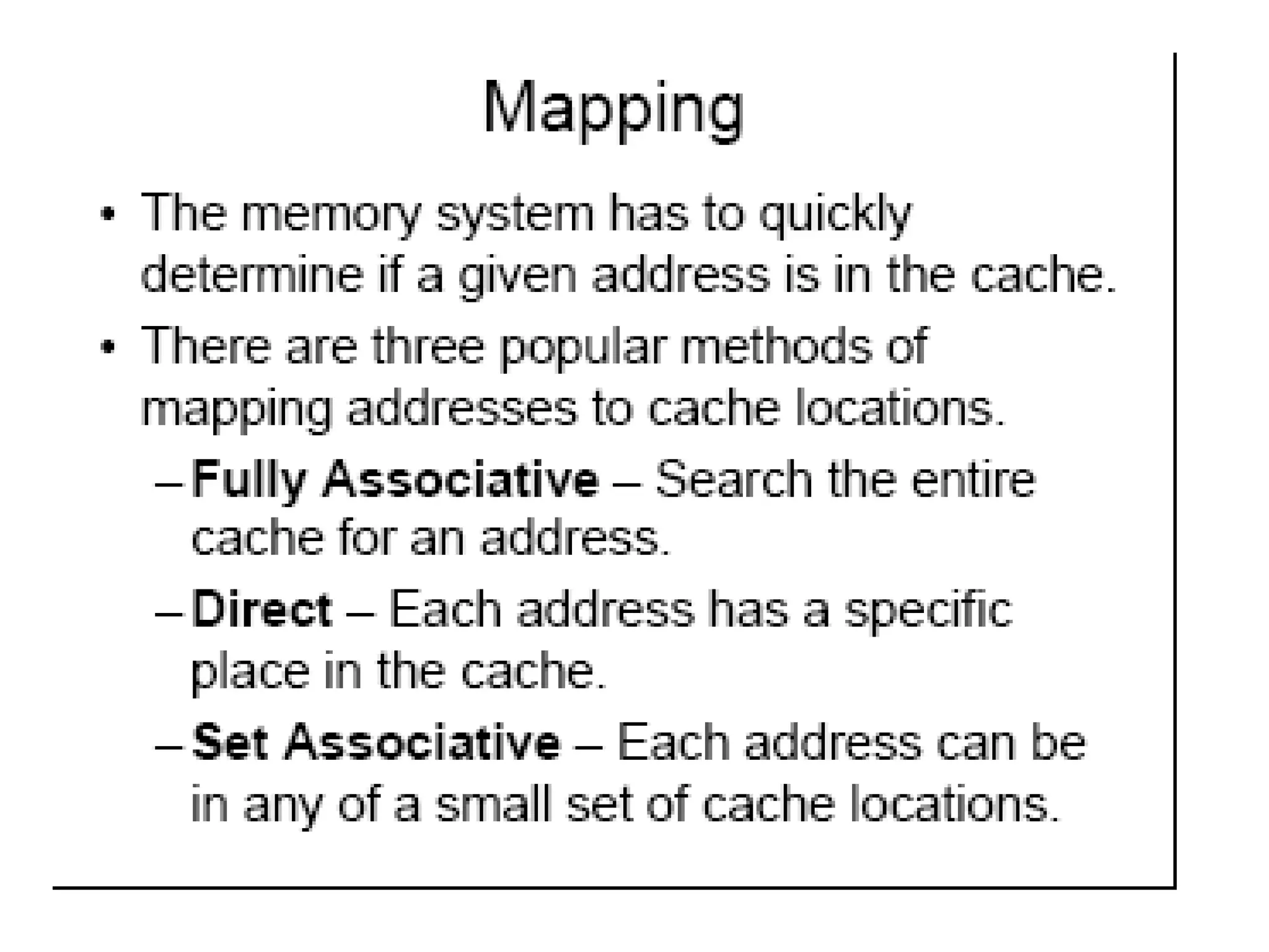 • Mapping Function – how to assign blocks