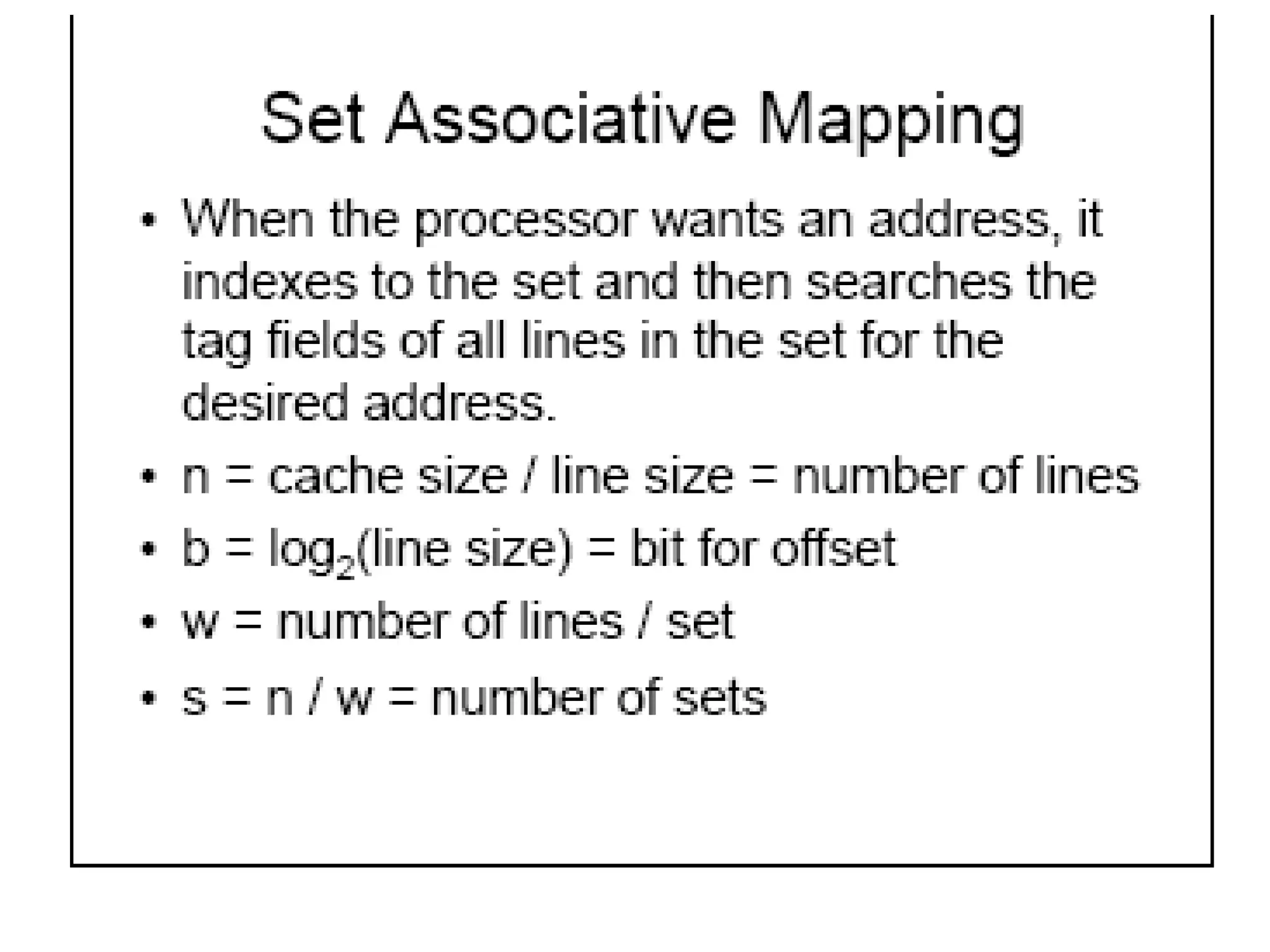 There may be more levels of cache (L1, L2,..)