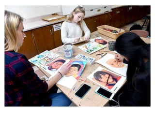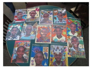 The Memory Project is a nonprofit organization that invites art teachers and students to create portraits for underprivileged youth around the world who have faced challenges. Since 2004, over 110,000 portraits have been created for children in 45 countries. The document provides information about the portrait creation process, how schools can get involved, funding, benefits of participation, and examples of portrait mediums created by students in the past like pencil, watercolor, collage, colored pencil, and marker. It also lists some of the countries where portraits have been created for children.
