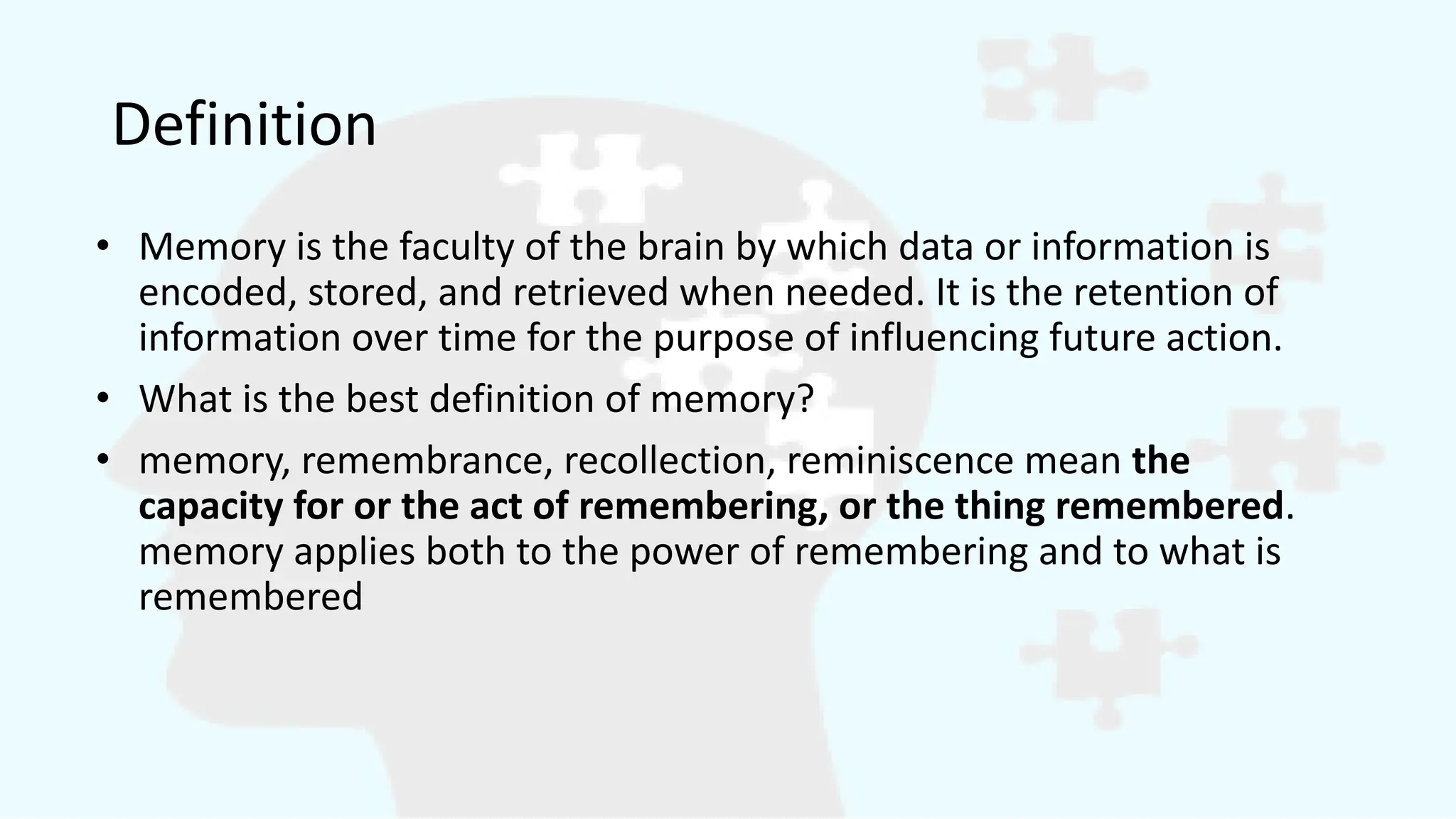• What is the best definition of memory?