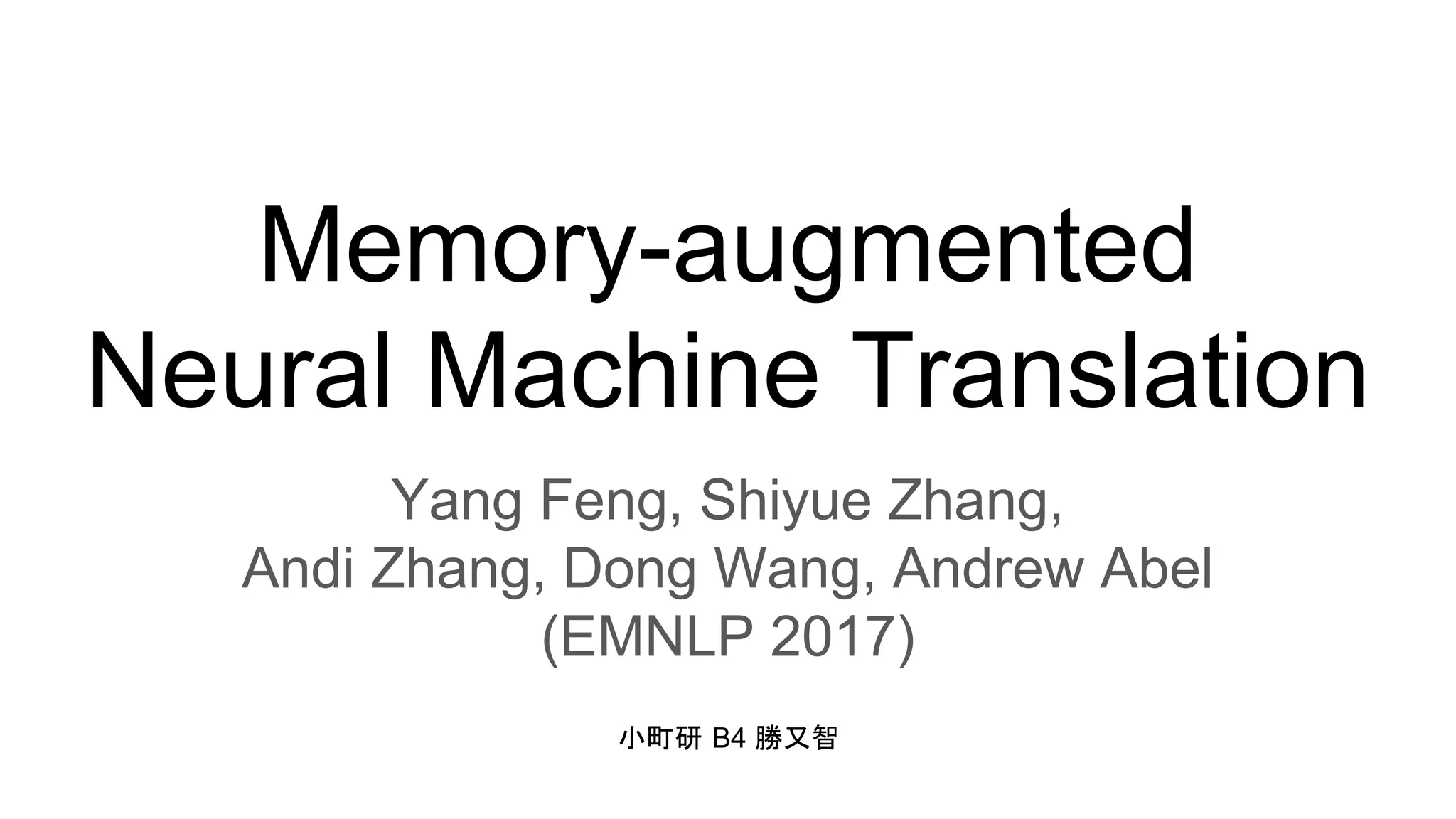 Memory-augmented Neural Machine Translation 1. 2. 概要