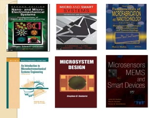 This document provides an introduction to microelectromechanical systems (MEMS). It defines MEMS as silicon-based microelectronics combined with micromachining technology to create tiny integrated devices that combine mechanical and electrical components. MEMS devices can sense, control, and actuate on the micro scale and generate macro scale effects. Common MEMS include accelerometers, inkjet printer heads, and biosensors. The document discusses the history, principles, applications, scaling issues, micromachining processes including lithography, wet/dry etching, and deposition processes used in MEMS fabrication.