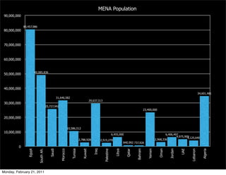 The document discusses Facebook usage statistics in the Middle East and North Africa (MENA) region from February 2011. It provides data on: