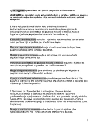 9.Sherbimet qe ofrojne bankat e sotme jane: dhenja e kredive