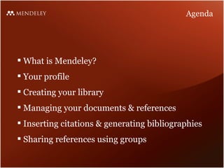 2. It can be used to create a personal profile and library of research papers by adding papers manually or importing from online databases. References can be organized into groups that are either private or public.