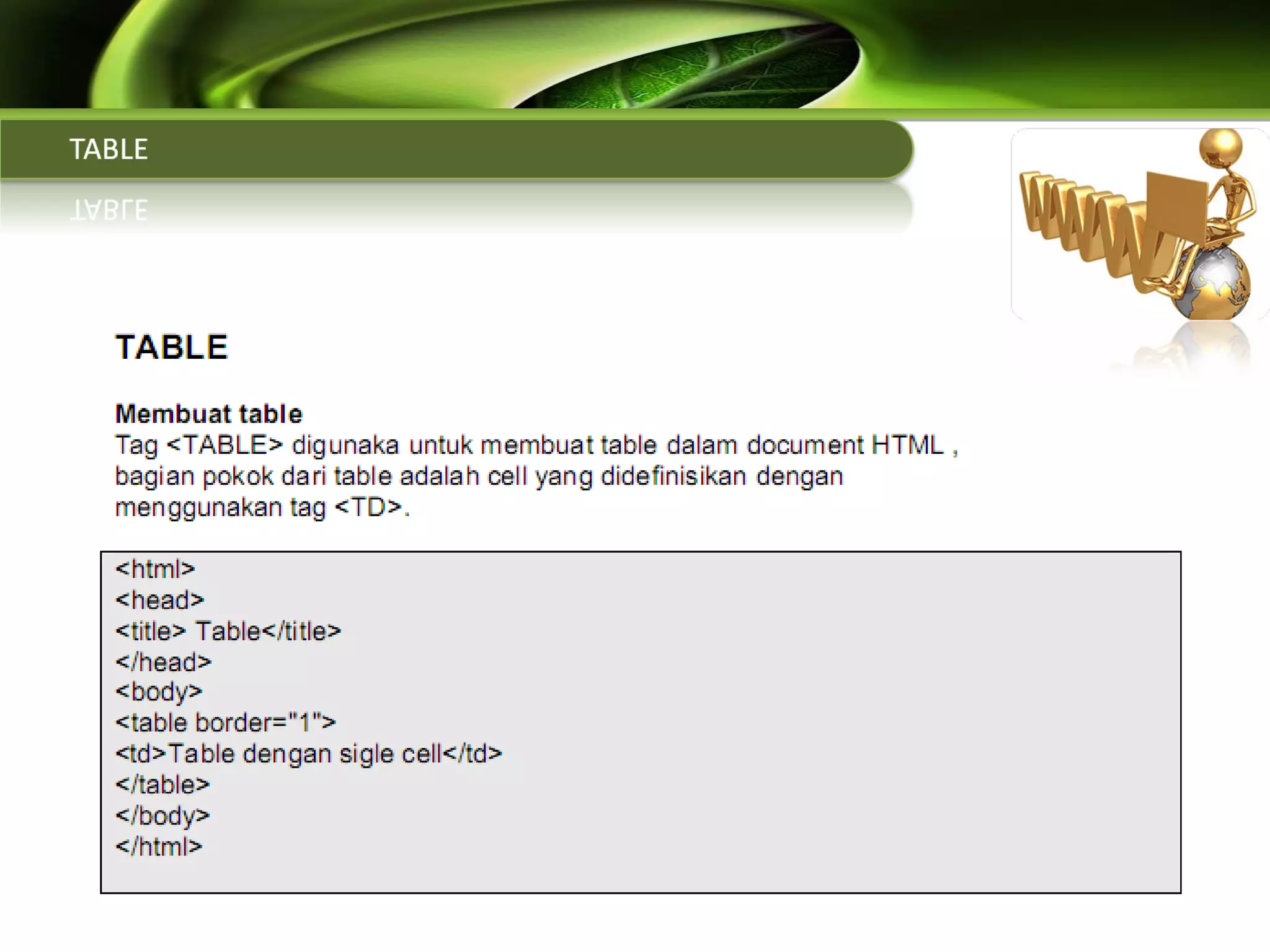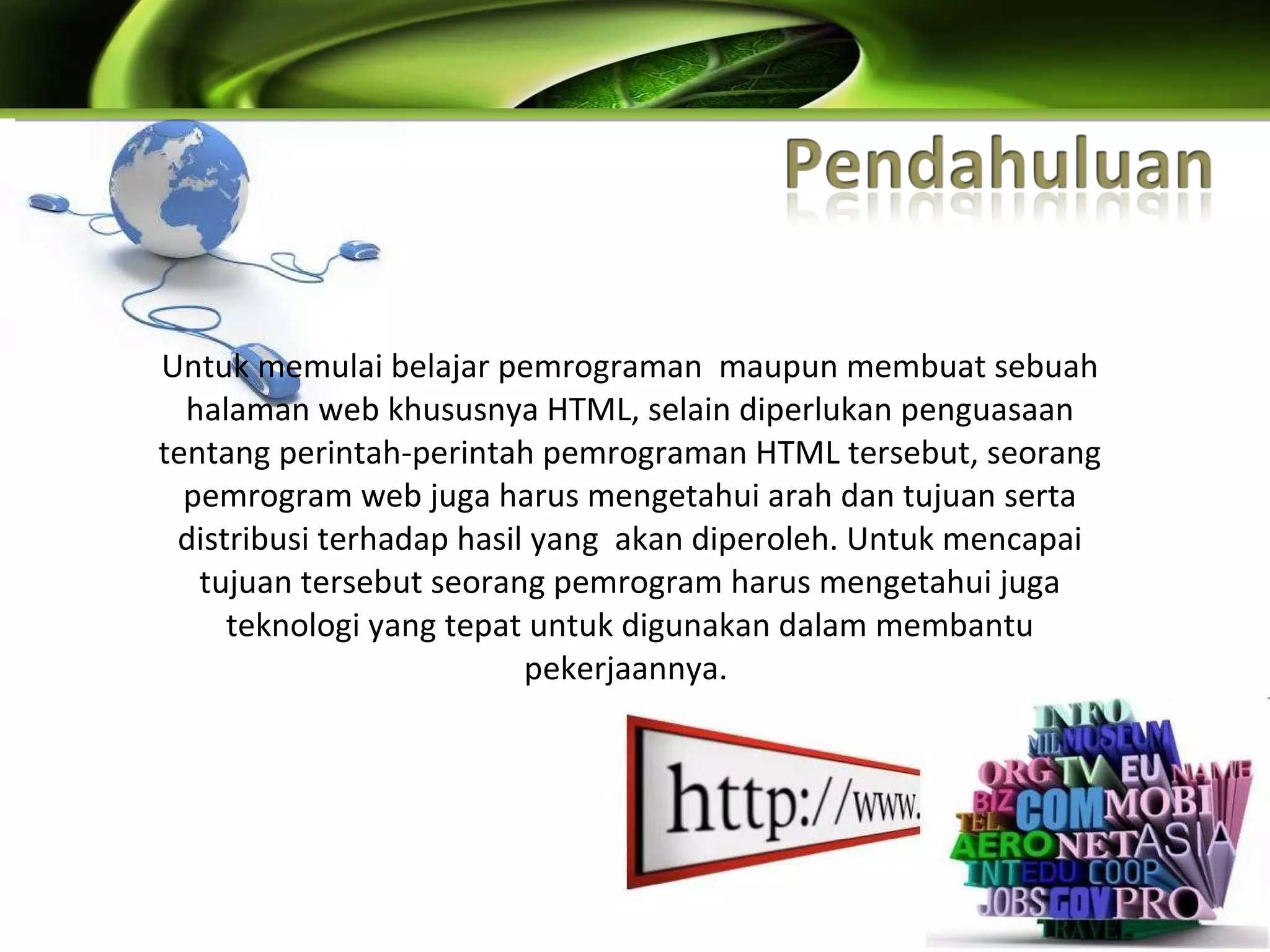 Untuk membuat halaman web diperlukan penguasaan HTML dan tujuan distribusi informasi. Teknologi seperti web server dan HTTP digunakan untuk mengirim dokumen HTML antara server dan browser. Dokumen HTML terdiri dari bagian header, body, dan properti untuk mengatur tampilan teks dan latar belakang.