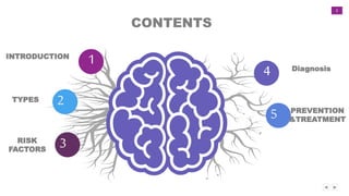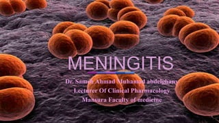 Meningitis is an inflammation of the meninges, which cover the brain and spinal cord. It can be caused by viruses, bacteria, or fungi. Bacterial meningitis requires urgent treatment with antibiotics to prevent death. Common symptoms include headache, fever, and neck stiffness. Diagnosis involves lumbar puncture and analyzing cerebrospinal fluid. Treatment depends on the cause but antibiotics are given for bacterial meningitis. Vaccines can prevent some types of bacterial meningitis.