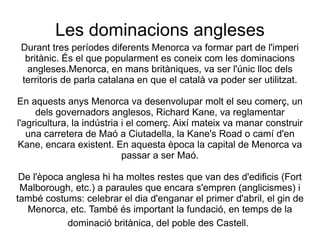 angleses.Menorca, en mans britàniques, va ser l'únic lloc dels