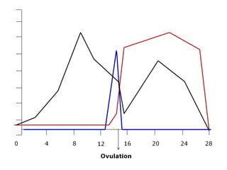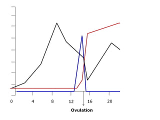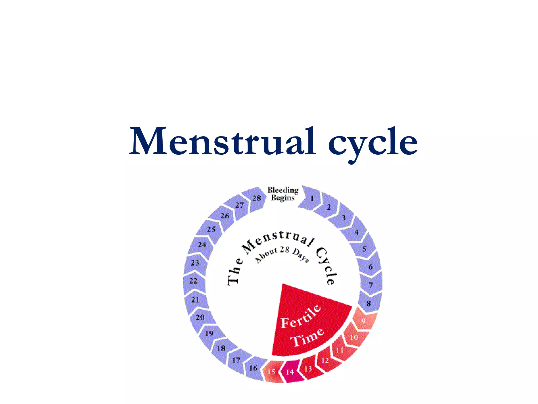 The menstrual cycle involves changes in the ovaries and uterus across approximately 28 days. In the ovaries, a follicle grows and matures, culminating in ovulation around day 14 when the mature egg is released. After ovulation, the ruptured follicle transforms into the corpus luteum which secretes progesterone and estrogen to prepare the uterus in case of fertilization. If fertilization does not occur, progesterone and estrogen levels drop and the endometrial lining is shed through menstruation, starting a new cycle.