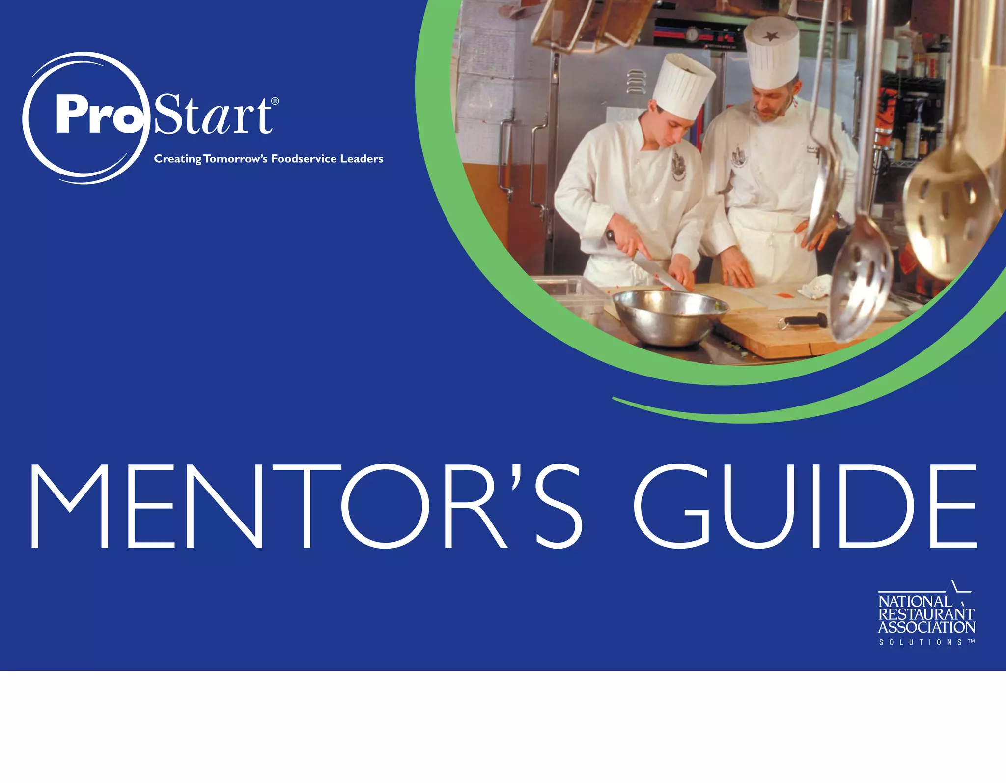 The document provides an overview of the ProStart mentorship program. It explains that the ProStart program pairs high school students with industry mentors to learn both classroom and on-the-job skills for careers in the restaurant and foodservice industries. It outlines the roles and responsibilities of mentors in guiding and supporting students through the program, including orienting them to the workplace, setting goals, providing feedback, and helping them develop both job skills and character. It also addresses potential challenges mentors may face and ways to overcome them.