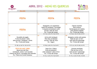 ABRIL 2012 –MENÚ IES QUERCUS