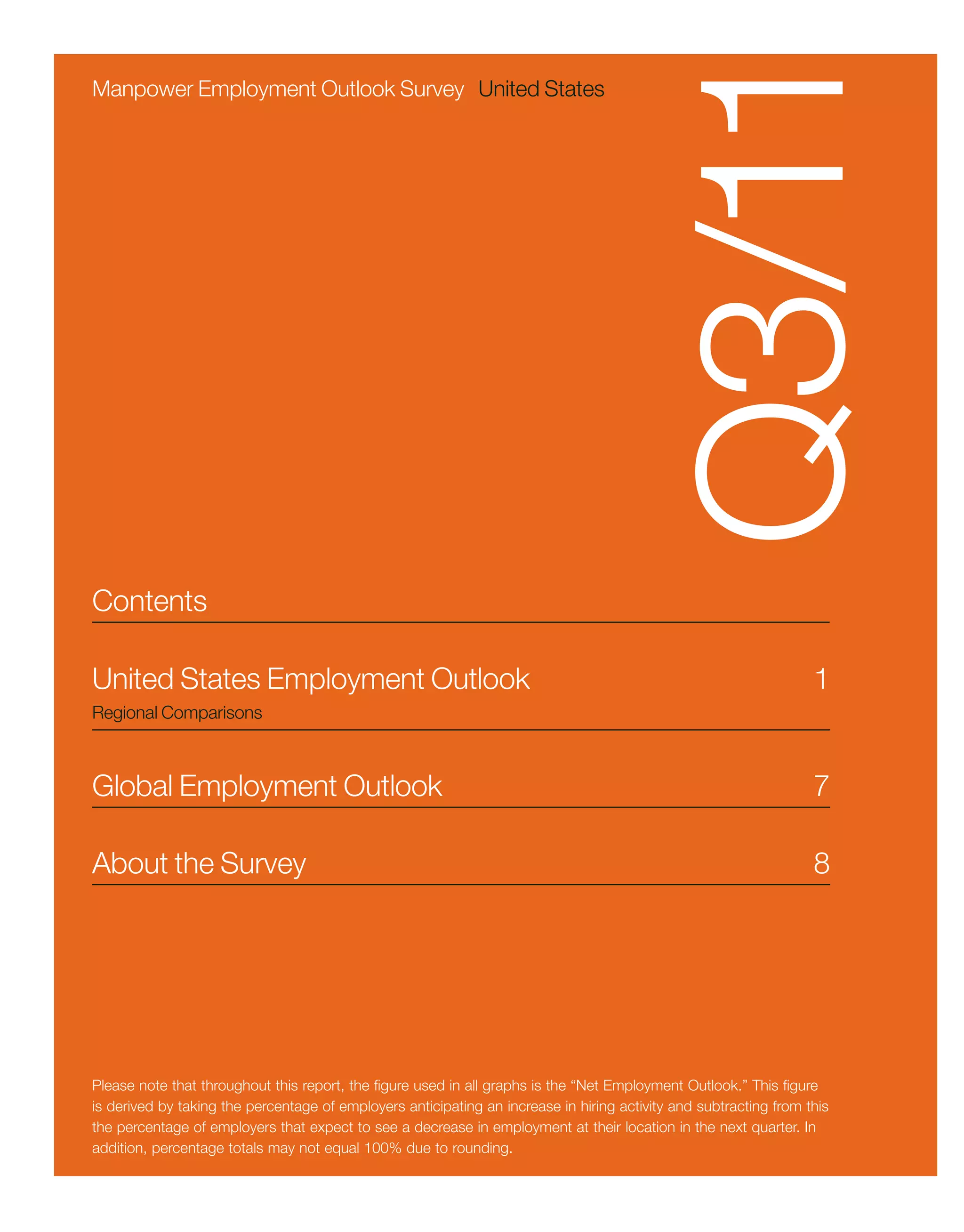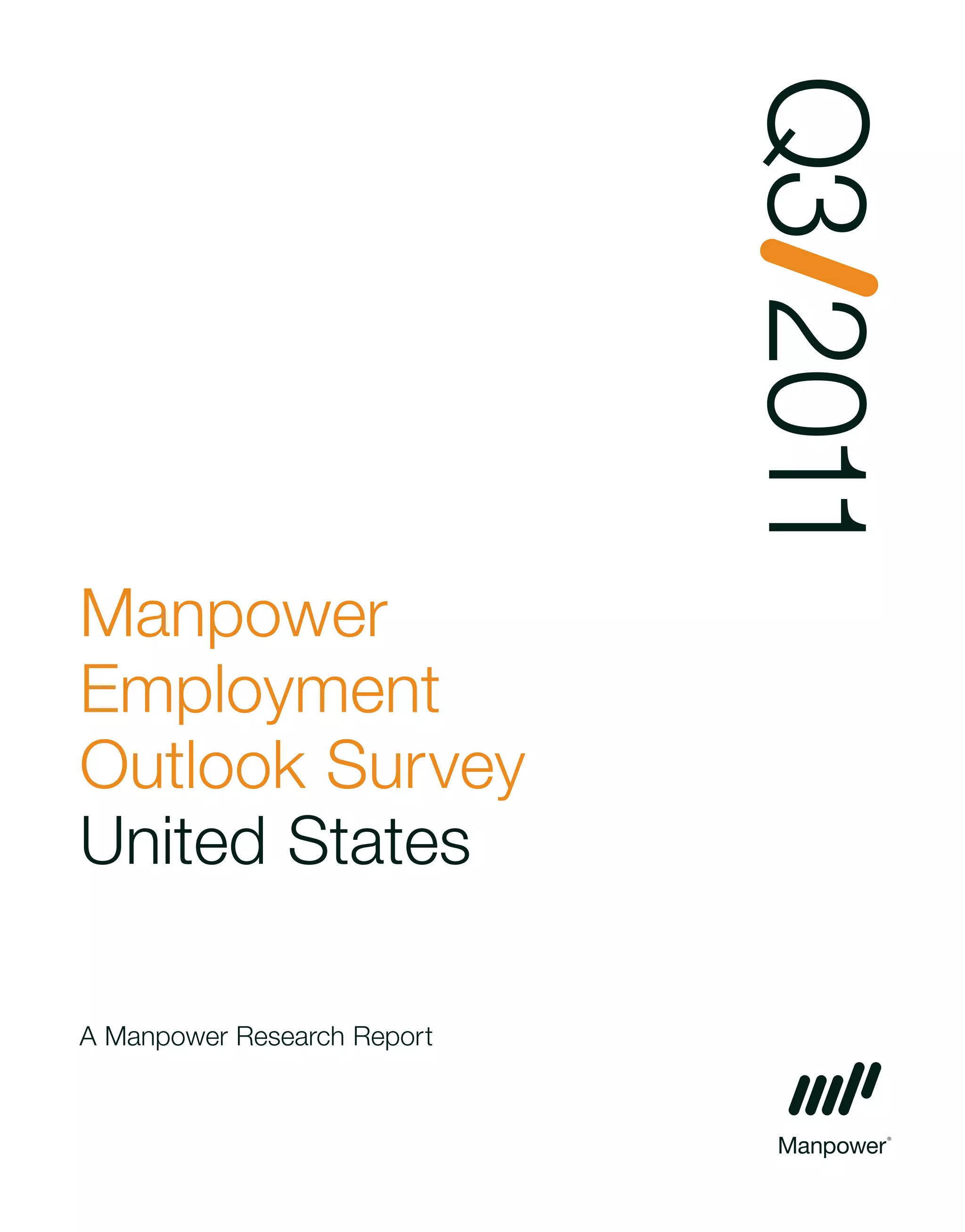 This document summarizes the results of a survey of over 18,000 employers in the United States about their hiring outlook for Q3 2011. Key points: