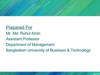 This document provides an introduction to a presentation on mercantilism. It lists the group members presenting - Kaniz Fatima, Fariha Ahmad, and Tarich Khalasi - and their student IDs. It then provides an overview of the basic concepts of mercantilism, including that it believes a nation's wealth depends on precious metals and favors exporting more than importing to accumulate gold and silver. It also notes Adam Smith first coined the term "mercantile system" and that mercantilist policies involved tariffs, subsidies, and limiting wages.