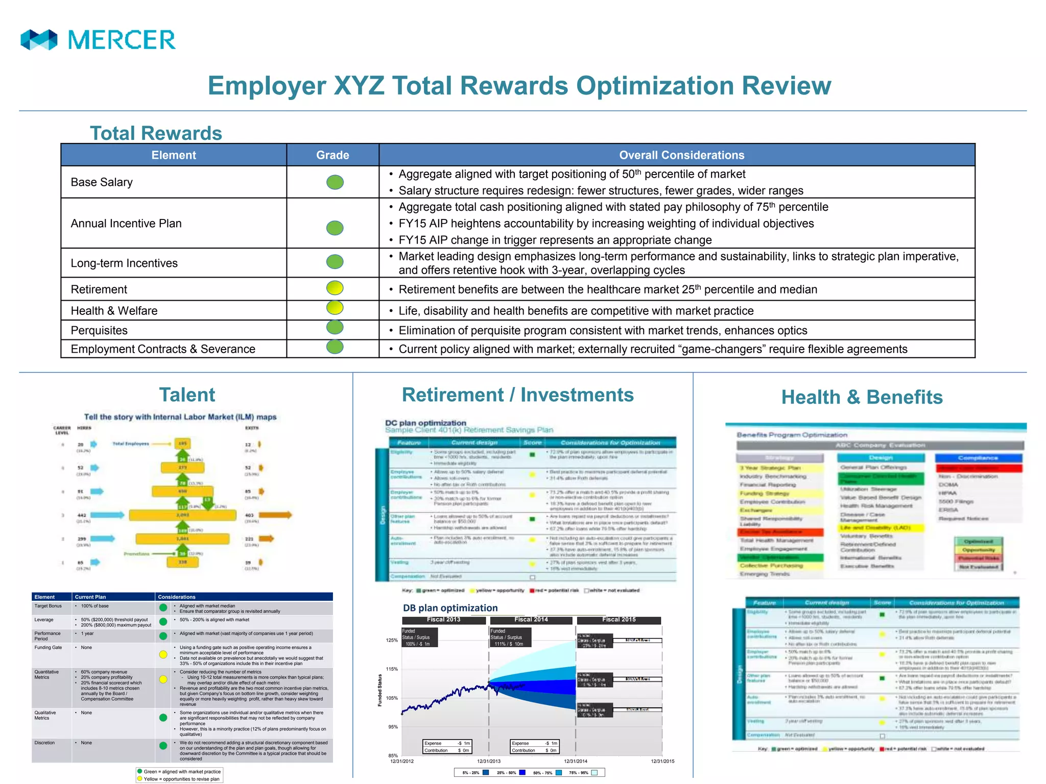 - The review found Employer XYZ's programs generally aligned with markets, with opportunities to
