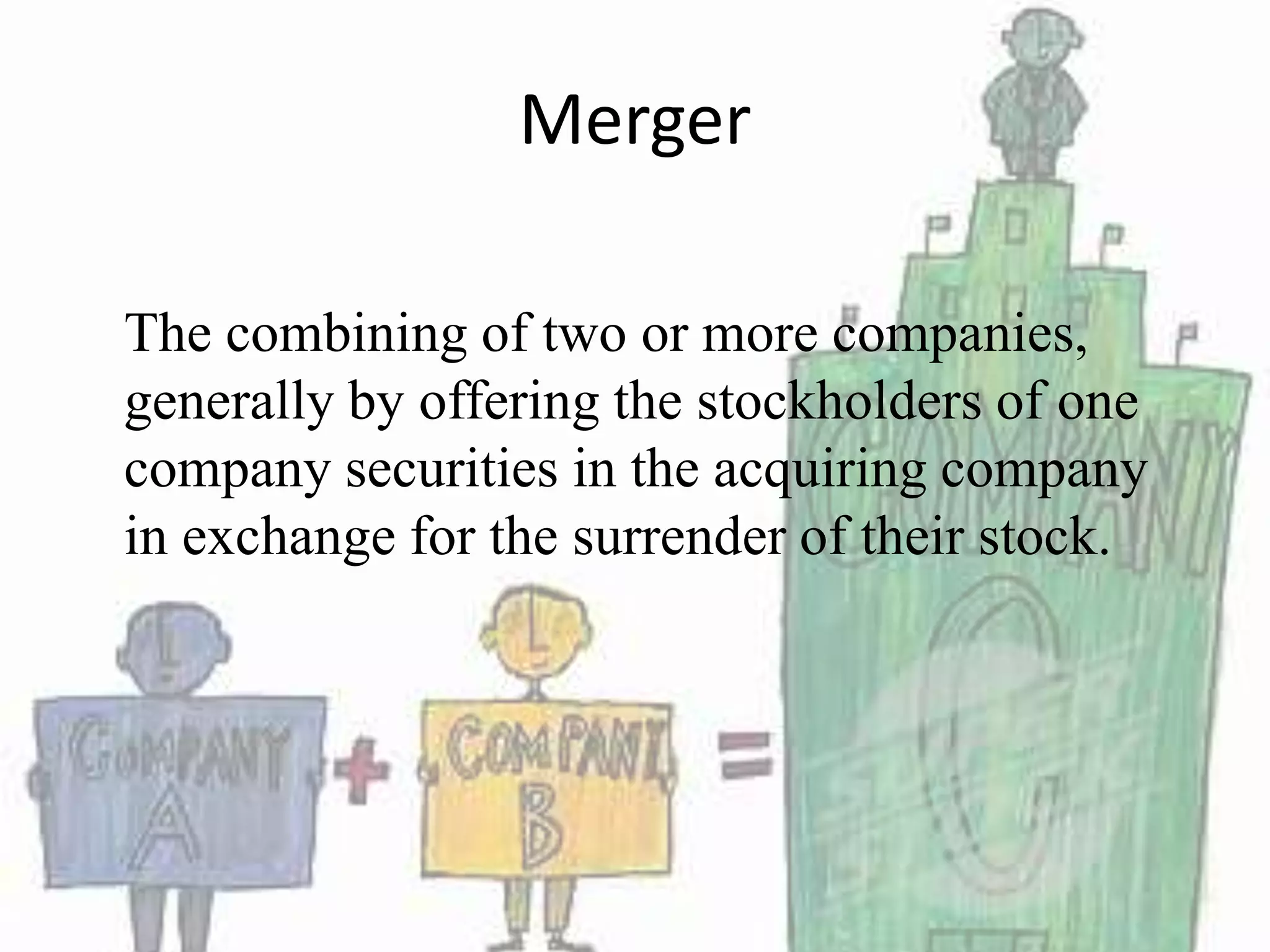The document provides information about mergers and acquisitions (M&A) in Nepal, including causes, examples of M&As, challenges, and the legal/regulatory framework. Some of the key M&As in Nepal include the merger of Eastern Electricity with Nepal Electricity Authority, Standard Chartered acquiring Grindlays Bank, and Teliasonera acquiring Spice Nepal. Regulatory requirements from Nepal Rastra Bank have encouraged consolidation in the banking sector. Challenges in M&A transitions include managing brands, leadership, employees, and integrating systems. Laws like the Company Act and Bank and Financial Institutions Act govern M&As in Nepal.