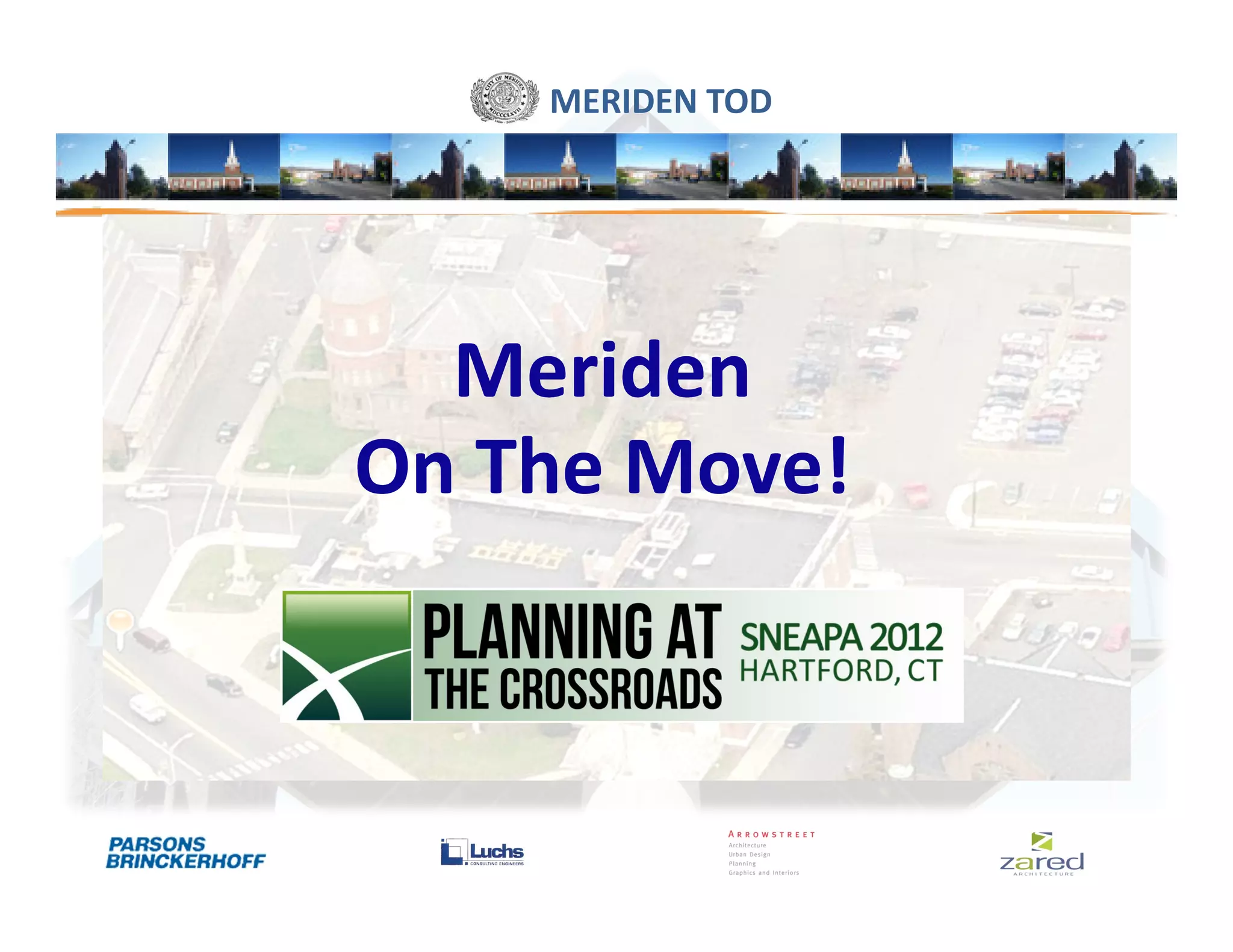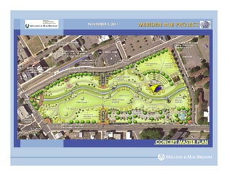 This document discusses plans to develop the area around the future Meriden train station into a transit-oriented development district. It proposes a zoning plan with sub-districts to encourage mixed-use and higher density residential development within walking distance of the station. The goals are to promote transit use, pedestrian access, and infill development to revitalize downtown Meriden around the new rail and bus transportation hub. Concepts for the station area and surrounding streets aim to improve connectivity and circulation for various modes of transportation.