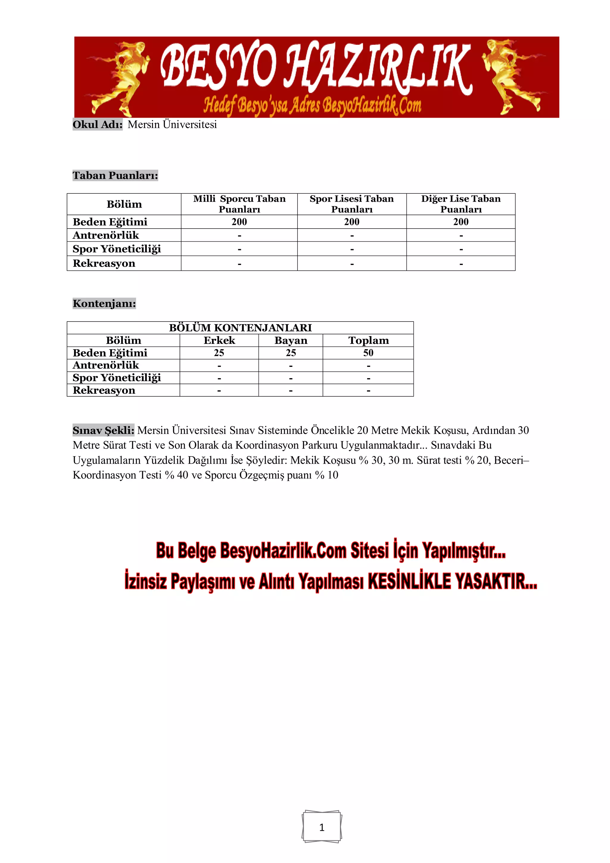 Sınav Şekli: Mersin Üniversitesi Sınav Sisteminde Öncelikle 20 Metre Mekik Koşusu, Ardından 30