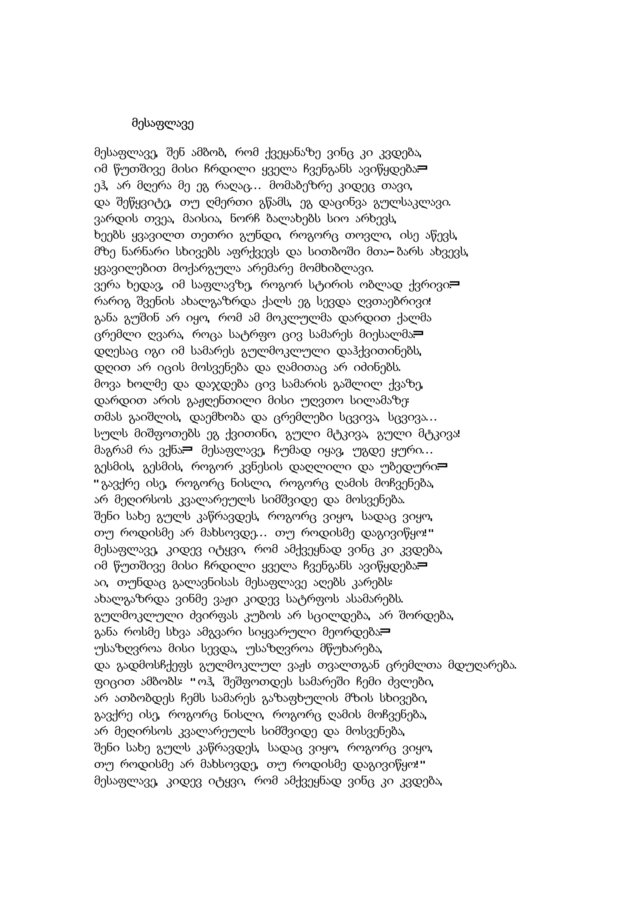 თქვენს ყოფნაში არ ერევა ცოცხალთ ფიქრი საარსებო...