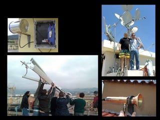 The document discusses mesh networks, which are wireless networks formed by connecting nodes without centralized administration. It describes the topology and attributes of mesh networks, including that they are self-organizing, self-healing, and scalable. It then provides examples of several existing mesh networks around the world and discusses some of the technical and community challenges in building mesh networks.