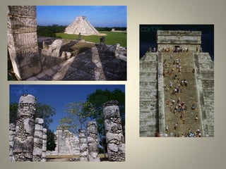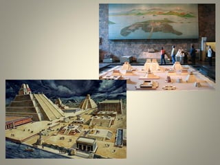 The document summarizes the major Mesoamerican civilizations - Olmec, Teotihuacan, Maya, Aztec, and Inca. It describes their origins, locations, political and social structures, economies, religions, and achievements. It also discusses their eventual declines, including the conquest by the Spanish for the Aztec and Inca. The Olmec, Teotihuacan, and Maya flourished in Mesoamerica before the rise of the powerful Aztec Empire in central Mexico and the Inca Empire in the Andes Mountains of South America.