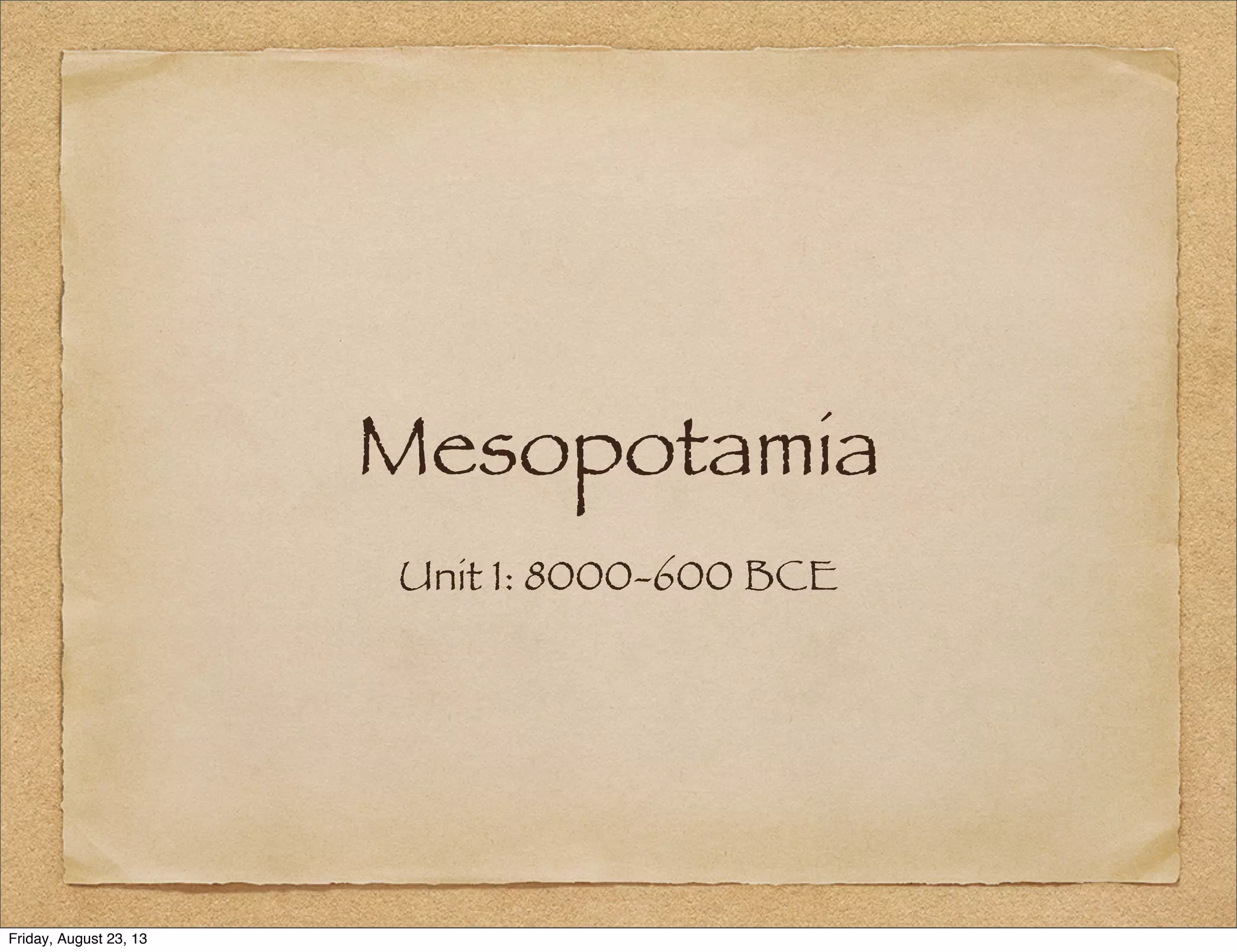 The document summarizes the history and developments of Mesopotamian civilizations between 8000-600 BCE. It discusses the Sumerians, who migrated around 4000 BCE and created the first civilization in Mesopotamia by organizing city-states. The Sumerians developed cuneiform writing, astronomy, arts, religion, politics, and agriculture. They were later conquered by the Akkadians, who established the world's first empire under Sargon. The Babylonians then dominated the region under King Hammurabi, who improved defenses and conquered territories. Hammurabi also established one of the first legal codes. Later invasions led to the decline of large political units and a return to smaller city-states