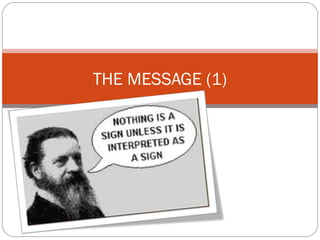 Dokumen ini membahas konsep semiotika dalam komunikasi, menyoroti struktur bahasa sebagai fondasi klasik yang terdiri dari tanda, simbol, dan makna. Pemikir seperti Charles Sanders Peirce dan Ferdinand de Saussure telah mengembangkan teori tentang bagaimana tanda merepresentasikan objek dan makna melalui kesepakatan sosial. Selain itu, dokumen ini menjelaskan perbedaan antara elemen-elemen tanda dan bagaimana kode serta konvensi budaya berperan dalam pemahaman komunikasi.