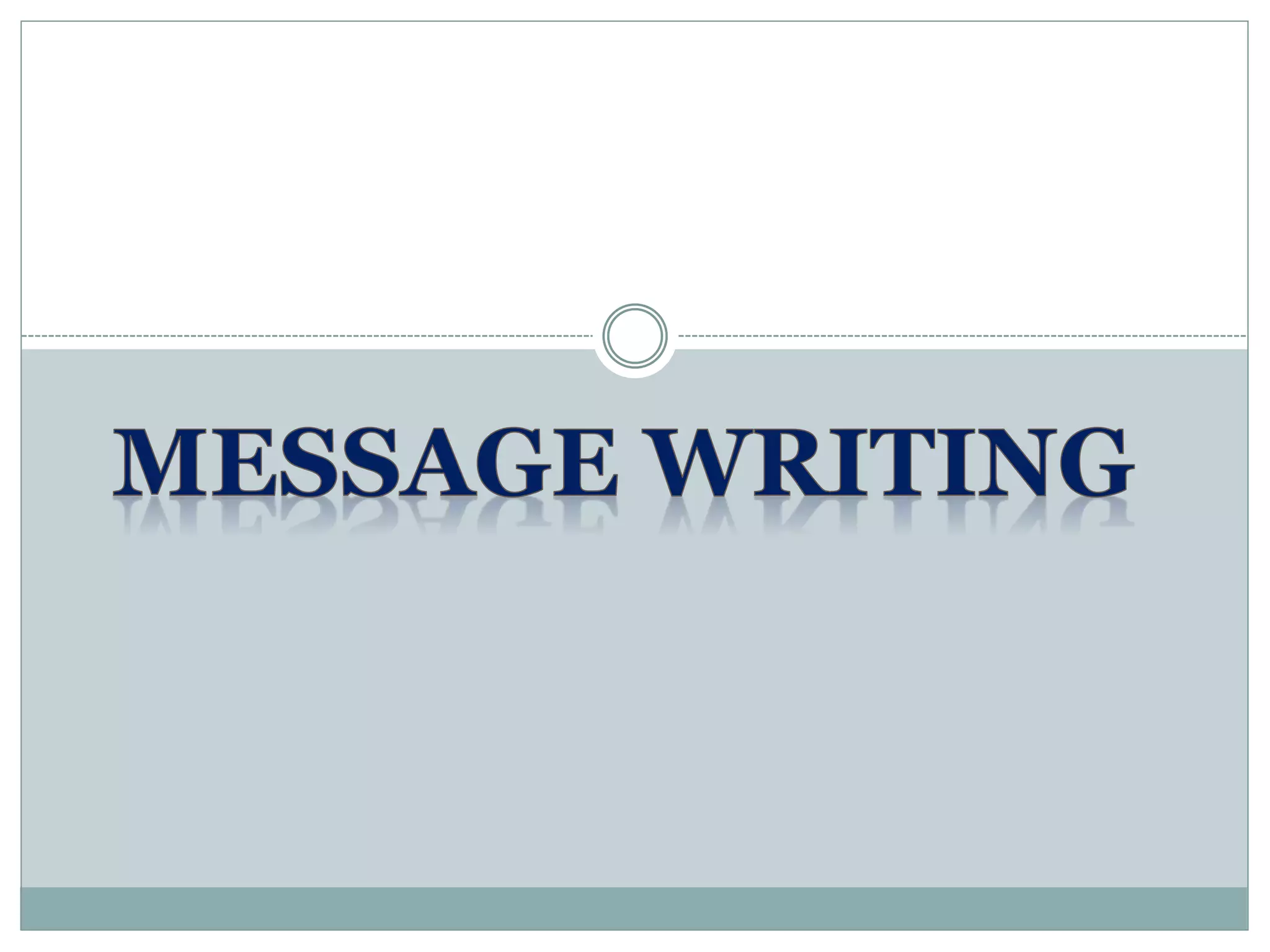 The document provides guidelines for writing an effective message in 3 sentences or less: (i) The word 'MESSAGE' should be written in bold in the middle. It should include the name of the person who left the message, the reason for the message, and any required follow-up action. (ii) The message format should use capital letters and be addressed to someone in an elaborate form. (iii) The message should not exceed 50 words and use simple language suitable for the intended reader, while staying focused, grammatically correct, and enclosed in a box.