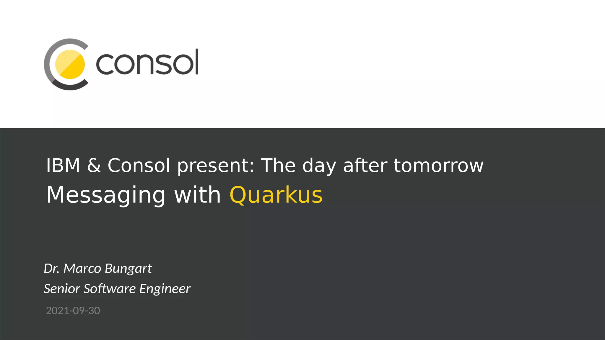 The document presents a presentation by Dr. Marco Bungart on Quarkus, a Kubernetes-native Java stack that offers lightweight execution and native binary compilation via GraalVM. It emphasizes developer experience and provides insights into messaging with asynchronous and reactive microprofile implementations, specifically exploring the interaction between customer and order services using AMQP and Kafka. Code examples and resources are available on GitHub, with a live demonstration included.