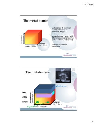 1. The document discusses strategies for metabolomics data acquisition, preprocessing, and quality control.