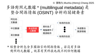 這是一個釜底抽薪的殺招。不論有多厲害的黑科技武器,如果沒有敵人的相關元數據,根本找不到敵人的位置,更別說打到敵人目標了。 同理,如果沒有多語對照元數據, AI 機器人都是廢鐵, AI 模型也都找不到我們要的數據。在短影音平台我們看到很多老美用英語叫不動大陸產聲控機器人的視頻,就是很好的例子。 我們都知道在餐館點餐需要我們看得懂的菜單。元數據就像是一份人工編輯的大數據菜單,是一個著作。試想一下,如果我們在一家西餐廳面對一張看不懂的洋文菜單時,這菜要如何點? 所以,如果沒有元數據(菜單),就算有再厲害的黑科技 (例如: AI ,高端芯片,超級電腦, ...),也是大海撈針,點不了菜,找不到所要的數據資料。 尤其甚者,多語對照的元數據在檢索與匯總分析多國語言數據時,尤其是不可或缺的基本要件。 https://www.slideshare.net/slideshow/multilingual-metadata-osint/275705852 讓我們看看當今世上是否有任何 AI 人工智能科技能回答下列關於包含中英文的商業情報問題: "美國專利商標局 (United States Trademark & Patent Office, USPTO) 在美東時間每周二定期發布新批准的美國專利。請問在最近的星期二,加拿大安大略省 (Ontario province of Canada) 或中國江蘇省,有多少公民營產官學研單位或個人獲得了新的美國專利?" 翻譯成英文則是: "How many entities are there in the Ontario province of Canada, or in the 江蘇 province of China, have new US patents granted on the nearest Tuesday (Eastern Time Zone), when USPTO released the newly approved US patents on a weekly basis?" 使用我們受著作權保護的中英對照元數據,就算是在普通的筆記型電腦上,我們也能按照人口普查 (census) 的行政區域地理位置找到所要的數據,回答上述問題。 從根本做起,換個賽道玩兒,更能有意想不到的震撼。 如有需要請聯絡 henry.chang212@gmail.com。謝謝!