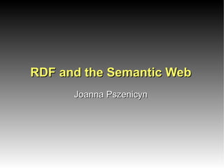 RDF and the Semantic Web are building blocks for representing data on the World Wide Web in a structured and linked manner. RDF uses triples of subject-predicate-object to describe resources, allowing data to be interlinked and combined across different schemas. This facilitates interoperability between web applications and enables machines to more easily process information at a global scale. While RDF syntax can be clunky, it provides a flexible and extensible framework for exchanging machine-readable metadata. The development of a global network of interlinked data accessed by intelligent programs remains a goal of the Semantic Web.