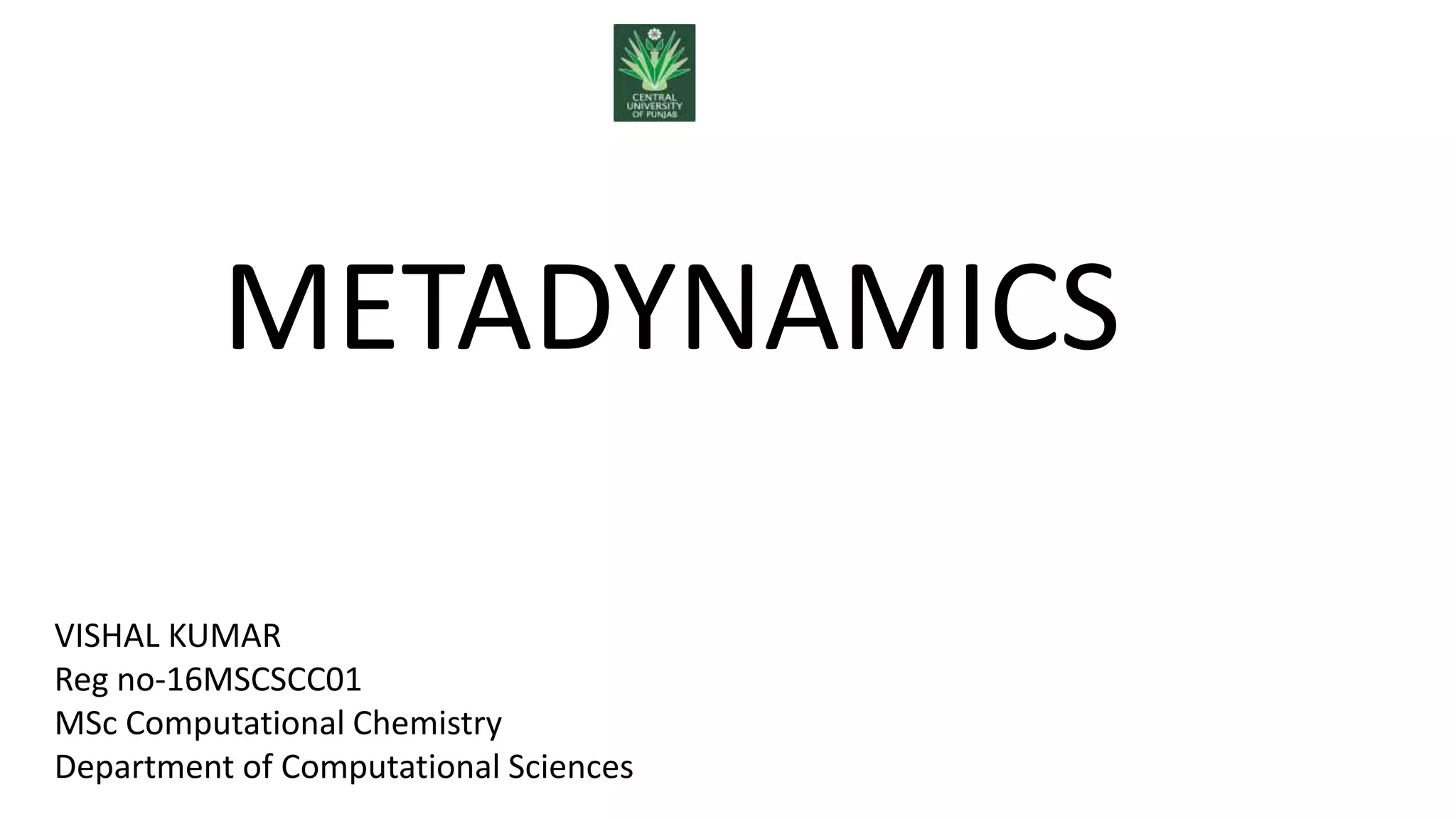 Metadynamics is a simulation method that facilitates the exploration of free energy surfaces for chemical reactions and other processes, addressing issues with limited time scales in traditional molecular dynamics. This technique employs bias potentials to enhance sampling and minimize energy barriers, allowing for the study of complex phenomena such as protein folding and chemical reactions. Despite some computational overhead, metadynamics is advantageous for providing insights into reaction mechanisms and estimating free energy landscapes.
