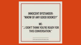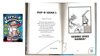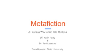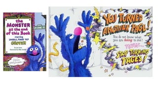 This document discusses metafiction, which is fiction that references or comments on its own fictional status. It provides examples of picture books that use metafiction techniques to get kids thinking, such as Harold and the Purple Crayon, Mysteries of Harris Burdick, and The Monster at the End of This Book. The document also includes links to blog posts and articles about metafiction and lists of metafictional books.