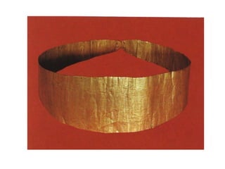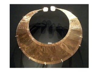 The Metal Age began around 4,500 BC and marked the last period of Prehistory. It was divided into the Copper Age, Bronze Age, and Iron Age. During the Copper Age, copper and gold were the first metals used by humans and were hammered into tools and weapons. The Bronze Age followed, using an alloy of copper and tin to make stronger weapons, tools, and utensils for agriculture and domestic use. Finally, in the Iron Age, iron became popular as it was even stronger than bronze, and new techniques like casting in molds were developed. Trade expanded, agriculture continued, and social stratification increased during this time.