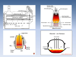The document discusses the properties and manufacturing of steel, emphasizing its use in modern construction due to its strength, flexibility, and recyclability. It outlines the construction process of steel buildings, site investigations, and compares steel structures to concrete structures, noting both their advantages and disadvantages. Additionally, it highlights notable steel structures and relevant standards in the industry.