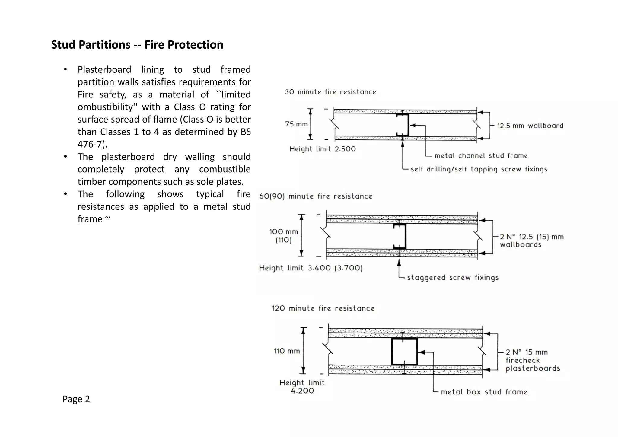 Metal stud partitions consist of a framework of vertical studs with a facing material attached. The space between the studs can be filled as needed. Traditionally timber was used but metal studs with plasterboard on both sides is also common. Plasterboard satisfies fire safety requirements as a material of limited combustibility with a Class O flame spread rating. Demountable partitions are internal dividers that are usually non-load bearing. They can be permanent or demountable to allow relocation with little damage. Demountable partitions come in many materials and styles, from stud partitions to framed panels to sliding/folding designs. Choice depends on finish, glazing, movement needs, and personal preference.
