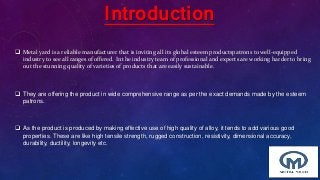 We Metal Yard, are one of the leading manufacturers, supplier, exporter and traders of high-quality products. We invite you to visit our highly equipped infrastructure facility and check out on the extensive range of products that we have on offer. We have set up a team of experts and skilled labours that closely monitor the markets to devise products that are sustainable. We offer a broad range of products like Sheets & Plates, Flanges, Fasteners, Shafting Rods, Round Bars, Strips, and Tubes & Pipes.