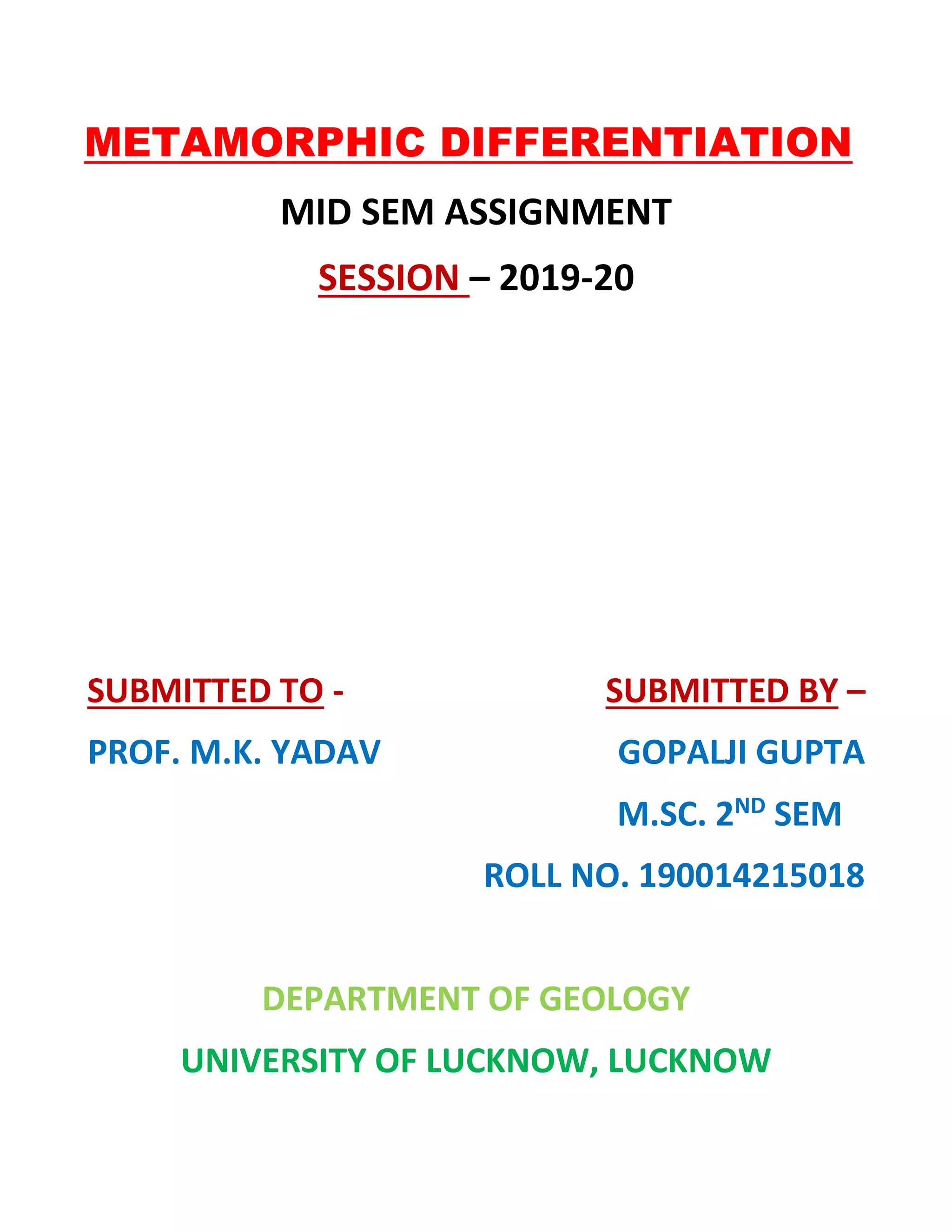 This document discusses metamorphic differentiation, which refers to the redistribution of mineral grains or chemical components within a rock during metamorphism. There are two main types - segregation, which produces mineral-rich layers, and compositional layering parallel to metamorphic foliation. Gradients in chemical potential that drive differentiation are created by factors like temperature differences, pressure differences, mineral composition, mineral size, and the surrounding media. Mechanisms of differentiation include preserving original layering, transposing original bedding, solution and reprecipitation of minerals, preferential nucleation of minerals in fluids, and migmatization involving partial melting.