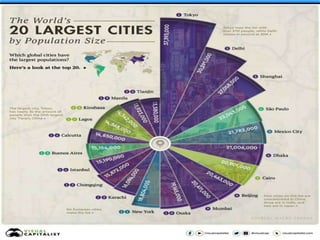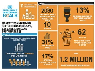 The document discusses the dual nature of cities, emphasizing their role as both engines of economic growth and significant contributors to environmental issues like heat, pollution, and waste. It highlights the urgent need for sustainable urban planning to create 'cool cities' that are resilient, inclusive, and environmentally friendly, with strategies such as compactness, greening, and effective transportation planning. The document also outlines the impact of climate change and rising temperatures on urban populations, calling for immediate action to combat urban heat and promote sustainability.