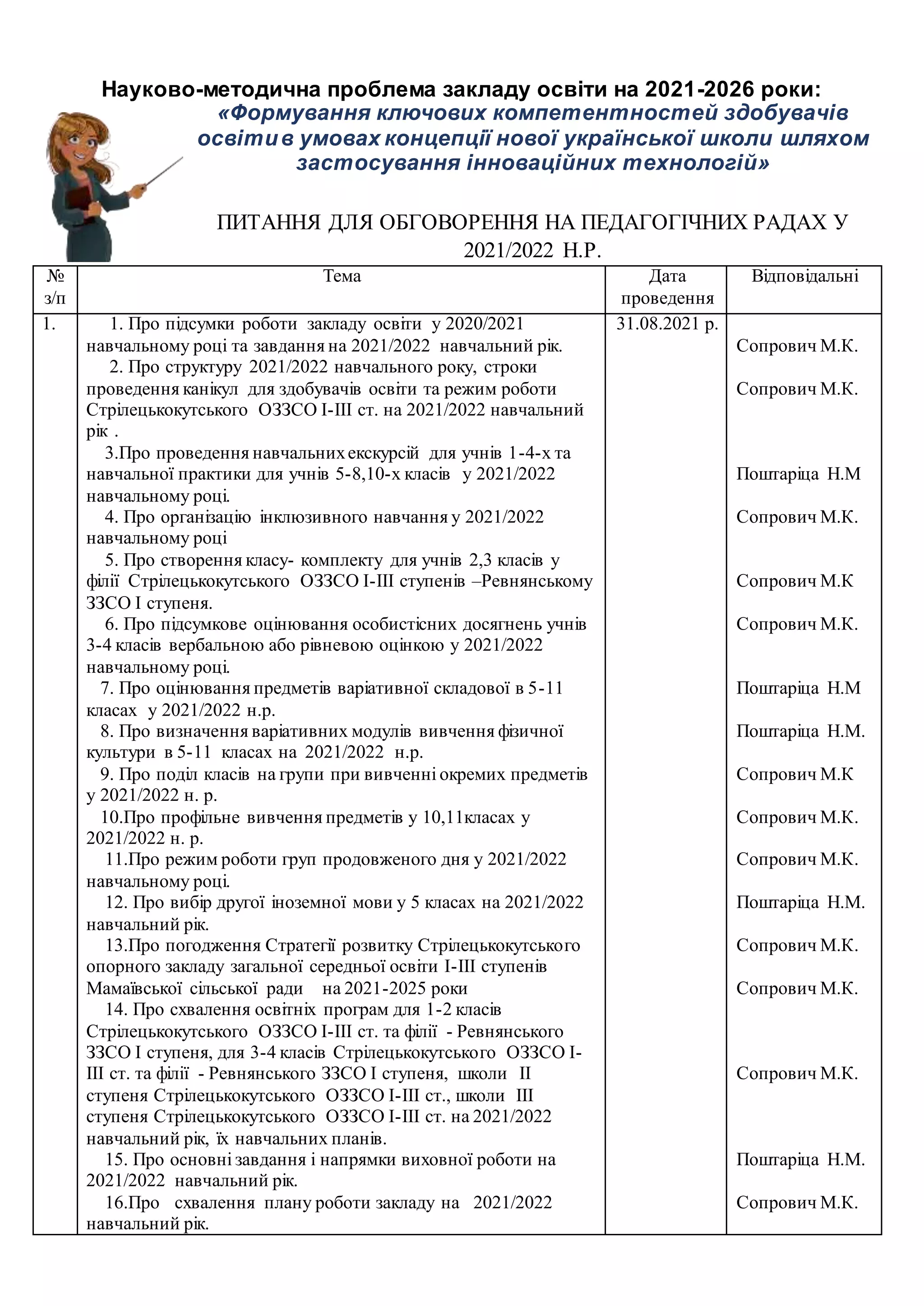 Стрілецькокутського ОЗЗСО І-ІІІ ст. на 2021/2022 навчальний