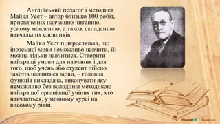 М. Уест сконцентрувавсяна методиці навчання читання. Він
