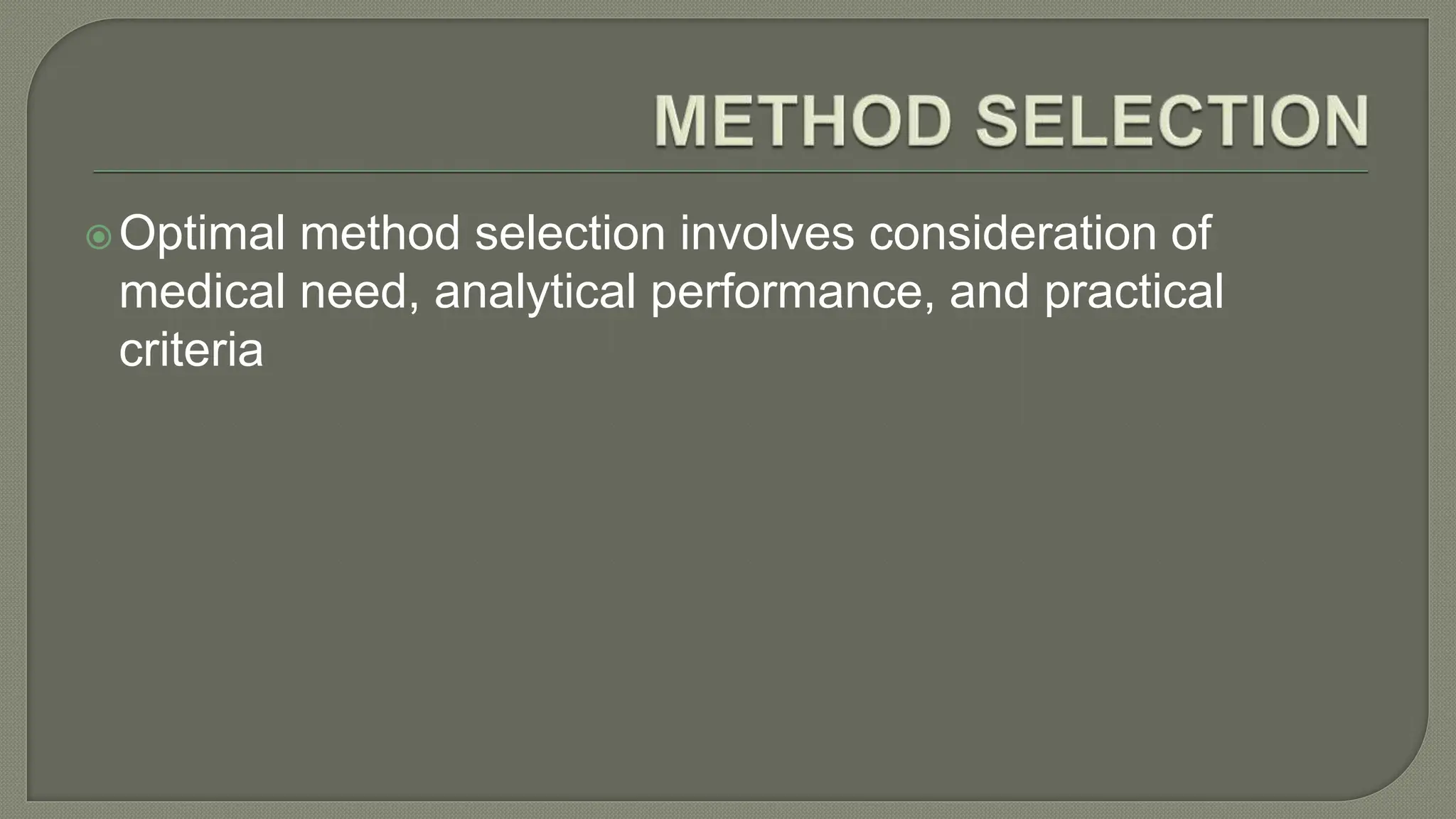 The document outlines the essential steps for method selection in analytical biochemistry, focusing on the evaluation of performance characteristics such as precision, accuracy, analytical range, detection limit, and specificity. It emphasizes the importance of method verification, validation, and quality control practices in laboratory settings, along with the necessity of establishing a startup phase for troubleshooting and training. Additionally, it discusses the analytical procedures for determining the accuracy and precision of methods through comparative analyses and statistical measures.
