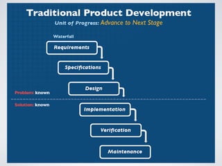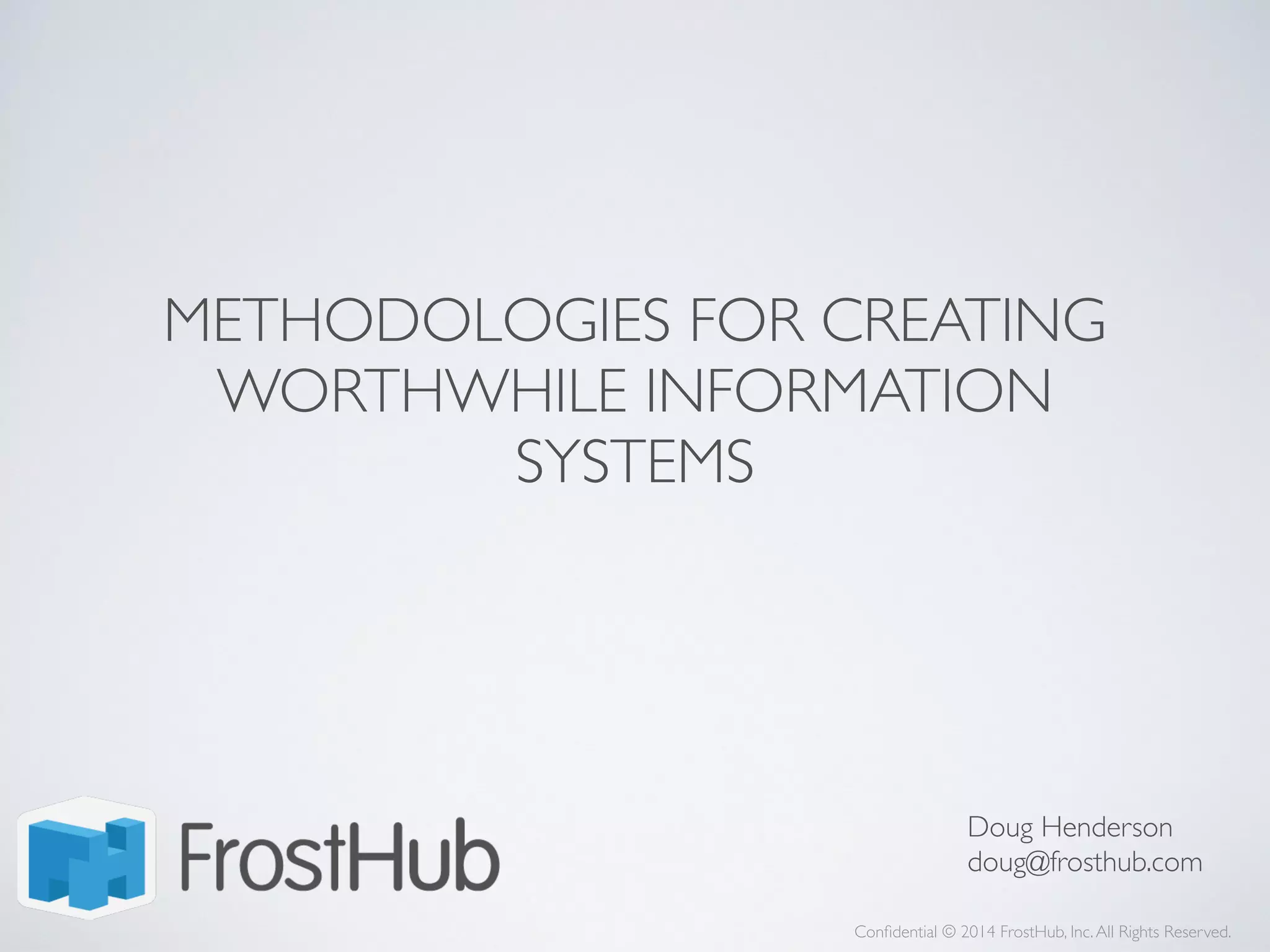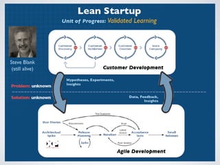 The document discusses methodologies for creating valuable information systems, emphasizing the application of lean startup principles to ensure customer-focused results. It highlights the importance of validated learning, entrepreneurship as management, and testing hypotheses about customer behavior to avoid building unwanted products. The use of minimum viable products (MVP) and agile development practices is also outlined to streamline the development process and pivot when necessary.