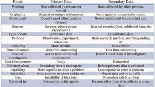 The document by Tanishka Jain outlines methods of data collection, emphasizing the importance of defining the research problem and design before gathering data. It distinguishes between primary data, which is collected directly by researchers, and secondary data, which consists of pre-existing information gathered by others. Both types of data have specific sources and methods for collection, impacting the research process.