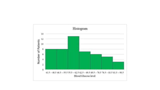 This document discusses various methods for presenting data, including textual, tabular, and graphical methods. It provides examples of each type of presentation: a frequency distribution table showing marital status data; a numerical frequency distribution of children per family; and examples of common graphs like pie charts, bar charts, histograms, and frequency polygons. The key methods discussed are tabular (e.g. frequency tables), bar charts, line graphs, pie charts, histograms, and frequency polygons for summarizing both categorical and numerical data visually.